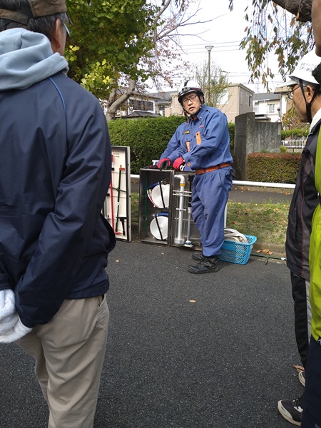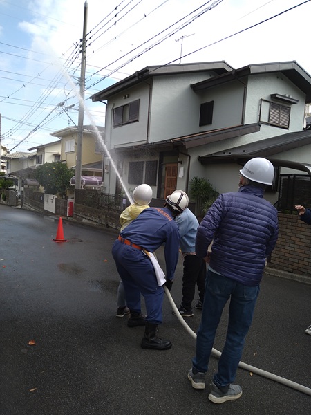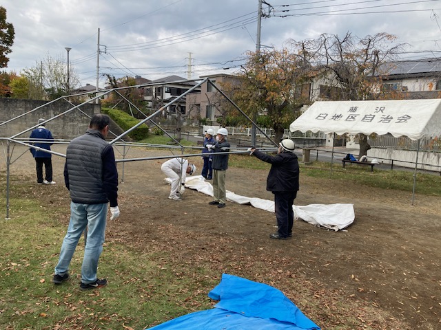 当自治会も参加を行い、その後、防災隊のテント組み立て訓練と茅ケ崎自治会が行った、放水訓練にも参加させていただきました。