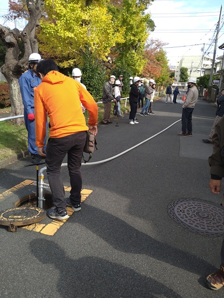 また、11時より茅ケ崎自治会が主催した、消防団の方々が見えて、消火栓からの放水訓練に参加させていただきました。