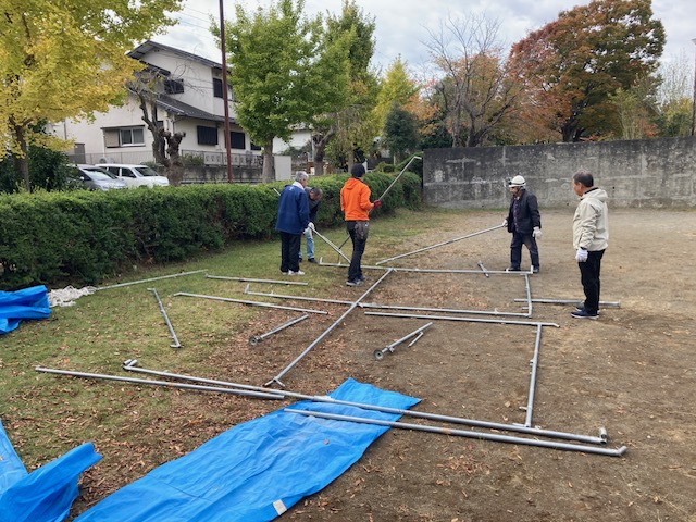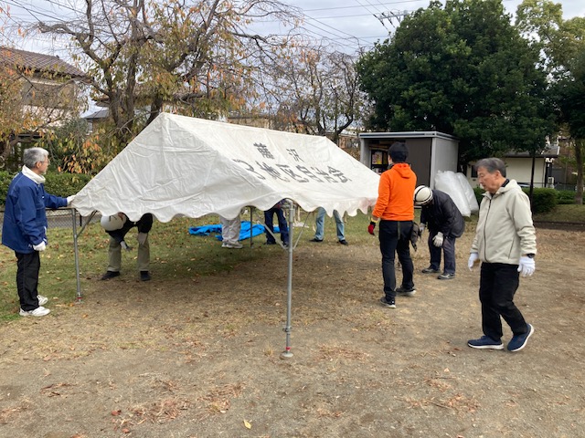 その後、下の公園にて、小・中テントの組み立て訓練