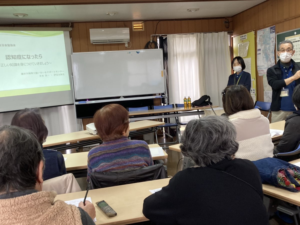 11月25日(火)10時から、いきいきサポートセンターより、2名の方に来ていただき、「認知症について」正しく知り。予防し、万が一の時についてのお話をいただきました。