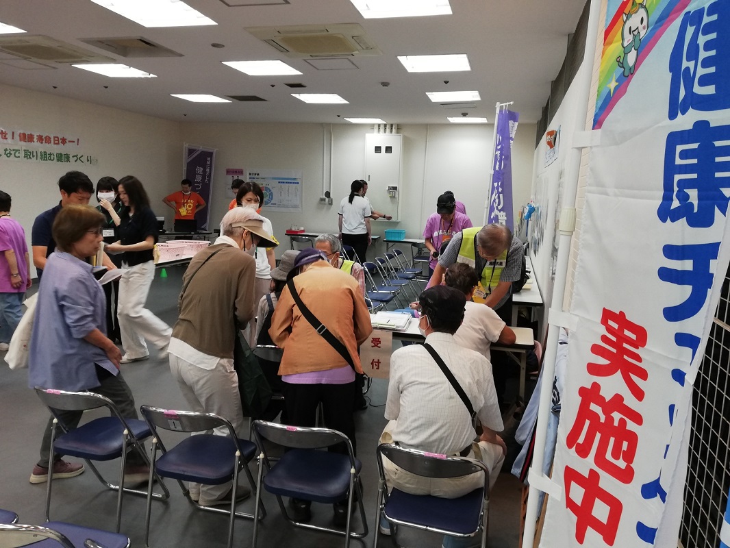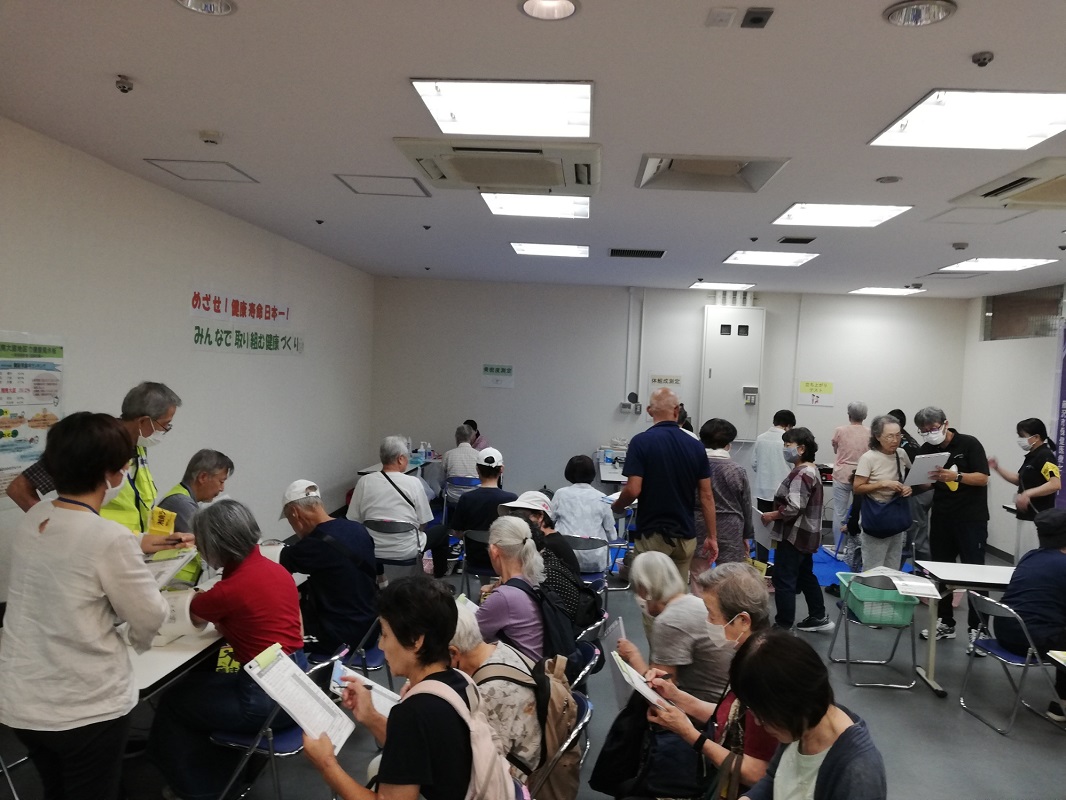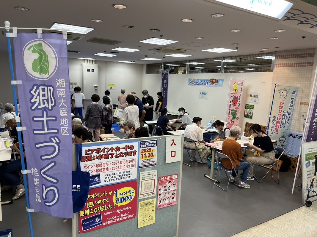 郷土づくり推進会議は、公益財団法人 藤沢市保健医療センターと藤沢市の健康づくり推進団体「健康ふじさわ」の協力のもと、9月29日・30日の両日午前中に、イオン藤沢店のライフピア特設会場で第5回となる「まちかど健康相談」を開催しました。開催初日は、参加者の皆さんの血圧、骨密度、体組成、筋力などの身体機能測定を実施し、保健師さんから健康管理についてのアドバイスを個別に行いました。二日目は、参加者の皆さんの歩行姿勢測定を行い、その結果に基づき、バランス能力・安定性に関する評価とアドバイスを提供しました。初日はイオン藤沢店の特売日と重なり多くの来店客があり、買い物の前後に本イベントに関心を示していただき、76名の方が自身の健康指標となる数値の再確認を行いました。二日目も59名の方にご参加いただいております。イオン藤沢店は来年1月末で休業の予定です。そのため、郷土づくり推進会議が企画するこの健康相談のイベントに継続して参加されていた方々からは、イオンの休業に伴う健康相談イベントの中断を残念に思う声も聞かれました。