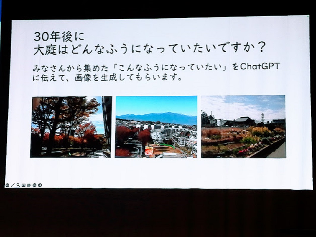 郷土づくり推進会議は 11 月 15 日(火)の午後、市民センター 1 階小ホールにて、2025 年度 まちづくり会議・♡VER湘南 活動報告・講演会(全体集会) を開催しました。集会は議長の司会、進行のもと、第 1 部・第 2 部の二部構成で実施されました。第1部では、郷土づくり推進会議が地域課題に取り組む今年度事業として、6つの活動報告を行いました。まず、今年度から新たに部会として参入した、旧まちづくり会議「活性化協議会」のメンバーを中心とした「マップ部会」より、湘南大庭 Happy Map 作成の経緯が紹介されました。(完成マップは、カラー版を参加者に配布)。続いて、デジタル推進部会、セカンドライフ部会、距離表示部会、かるた部会(途中で遊び方のデモンストレーションあり)の4部会から活動報告があり、最後に「大庭城跡を活かしたまちづくり」の取り組み状況について紹介を行いました。第2部では、慶應義塾大学環境情報学部の中澤教授をお招きし、「生成AIで想像する湘南大庭の未来」をテーマに講演をいただきました。講演では、対話型AIサービス ChatGPT を使った質問回答、画像生成、現在の写真から未来を創造する実演など、参加者が楽しみながら AI の可能性を学べる内容となりました。最後に、大塚市民センター長より参加者へ向けた挨拶があり集会を終了しました。