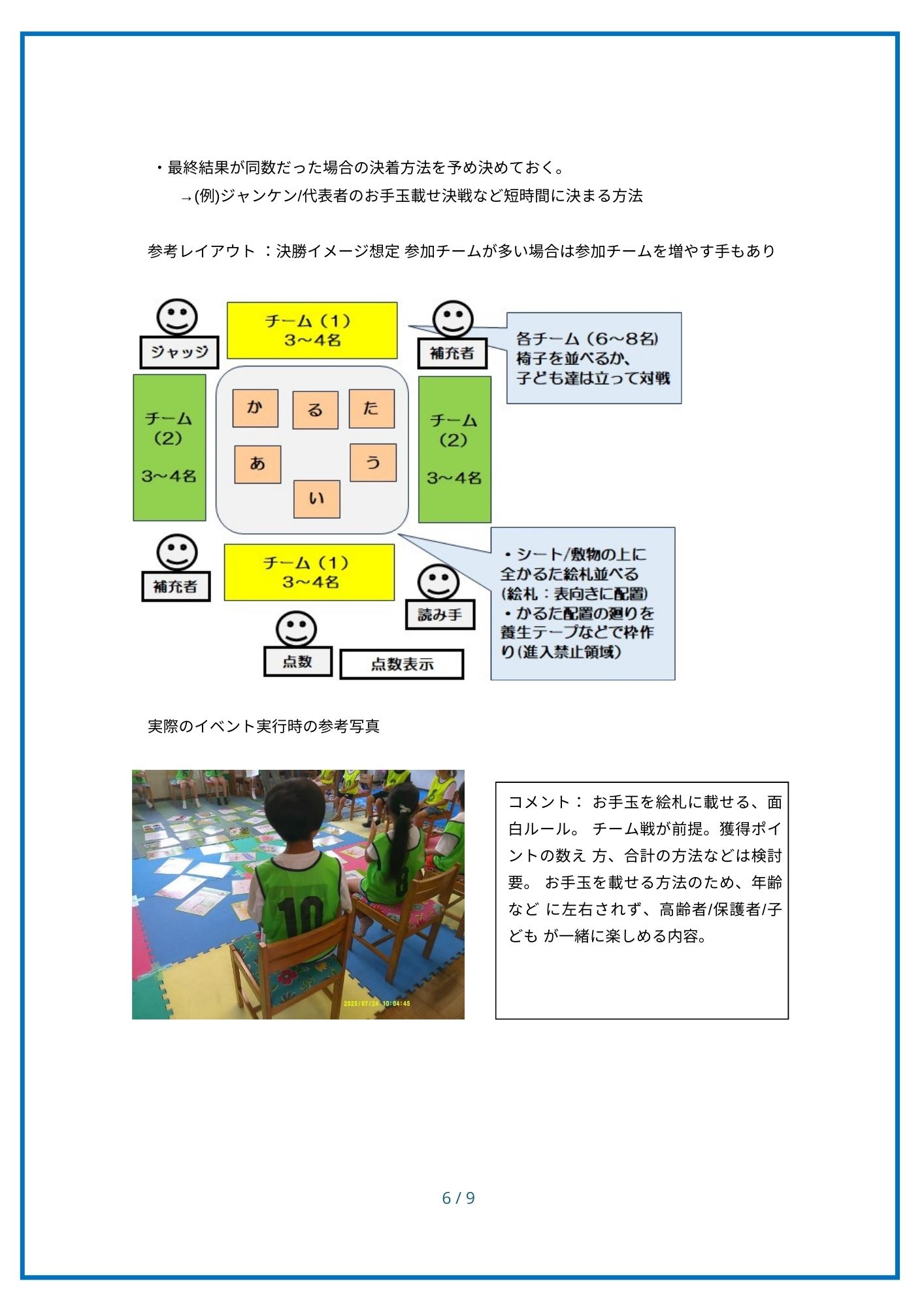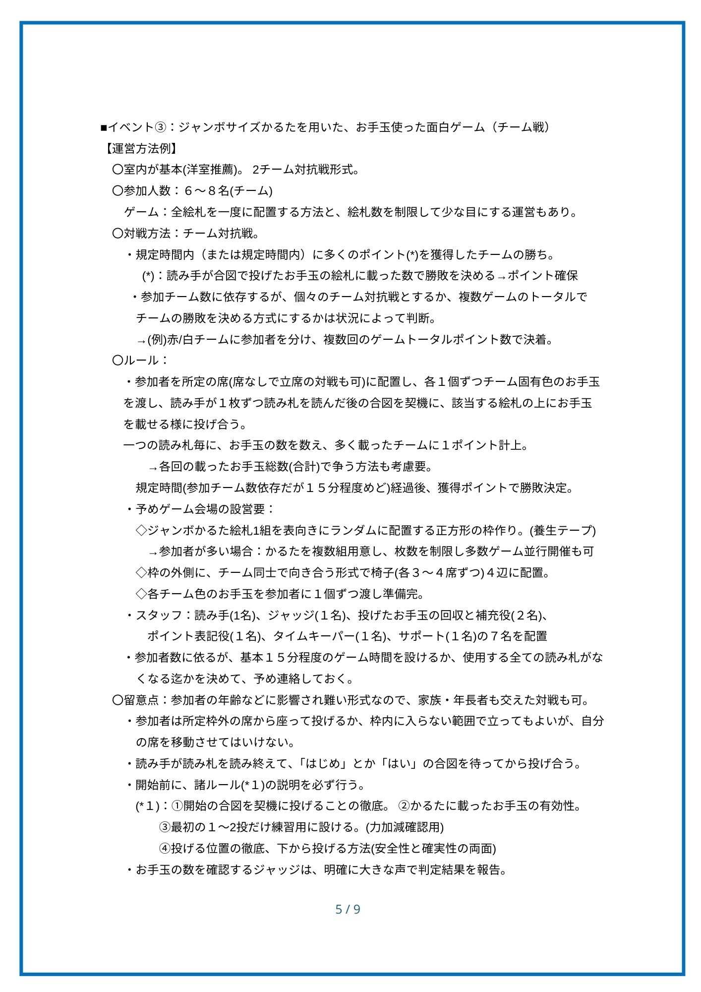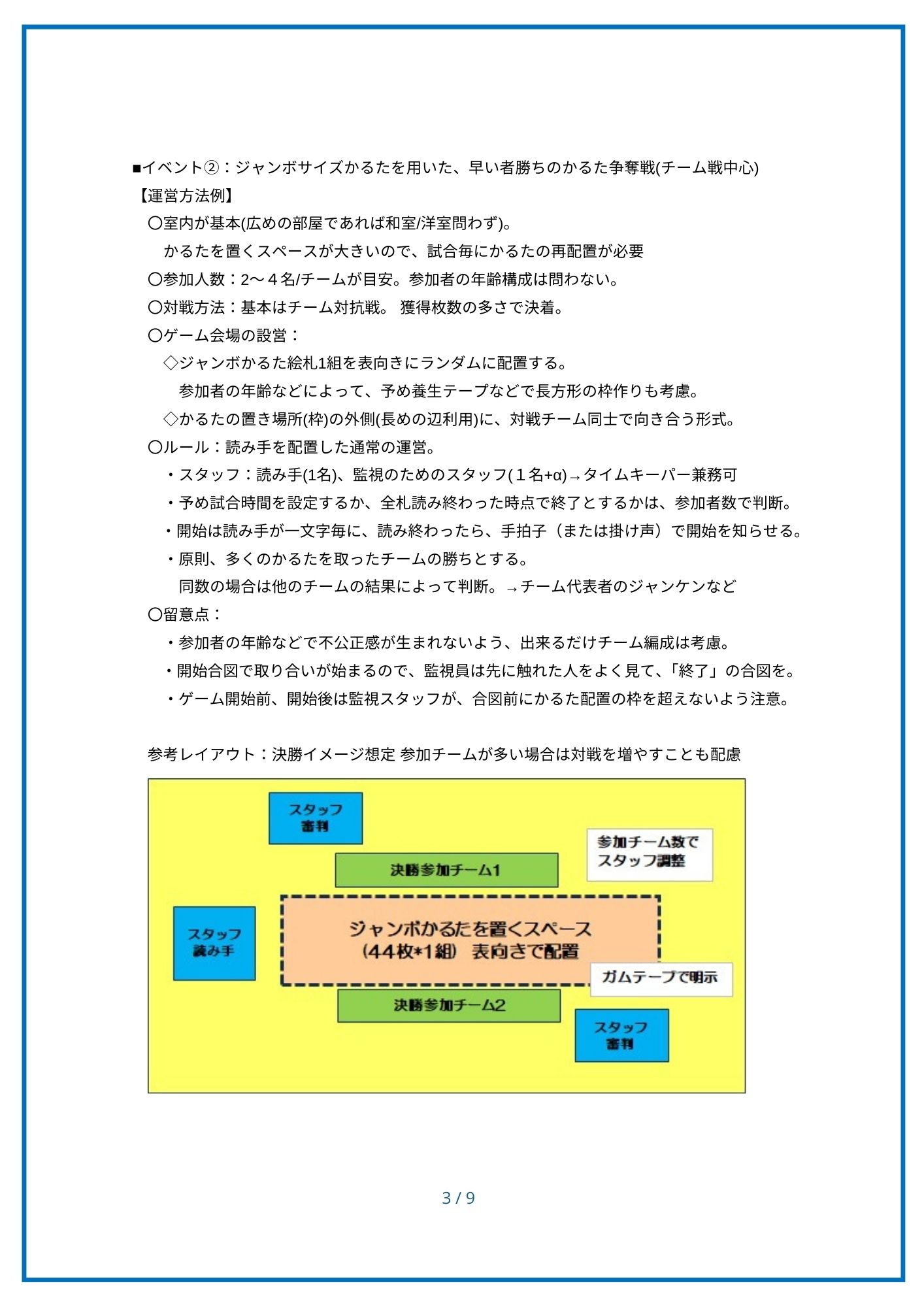 「湘南大庭ふるさとかるた」は、地域の小中高校の協力をもとに、第7期郷土づくり推進会議のかるたを創る会(かるた部会)が令和7年度に企画・制作した、地域密着の「みんなのかるた」です。かるたを使って、地域のみなさんが楽しめるよう、かるたイベントの概要と運用ルールなどをまとめました。 地域内への浸透を図り・次世代への引継ぎ用の情報として当資料を活用していただくことを願っています。