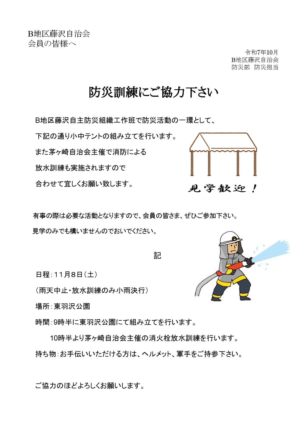 B地区藤沢自治会に関する、お問い合わせや、ご要望をお寄せください。
