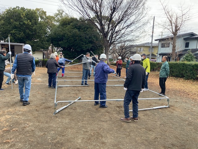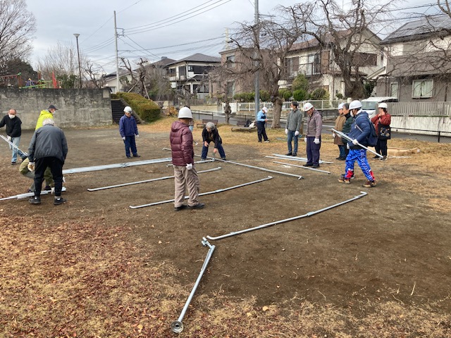 12月20日(土)に自主防災隊で、大型テントの組み立て訓練を行いました。