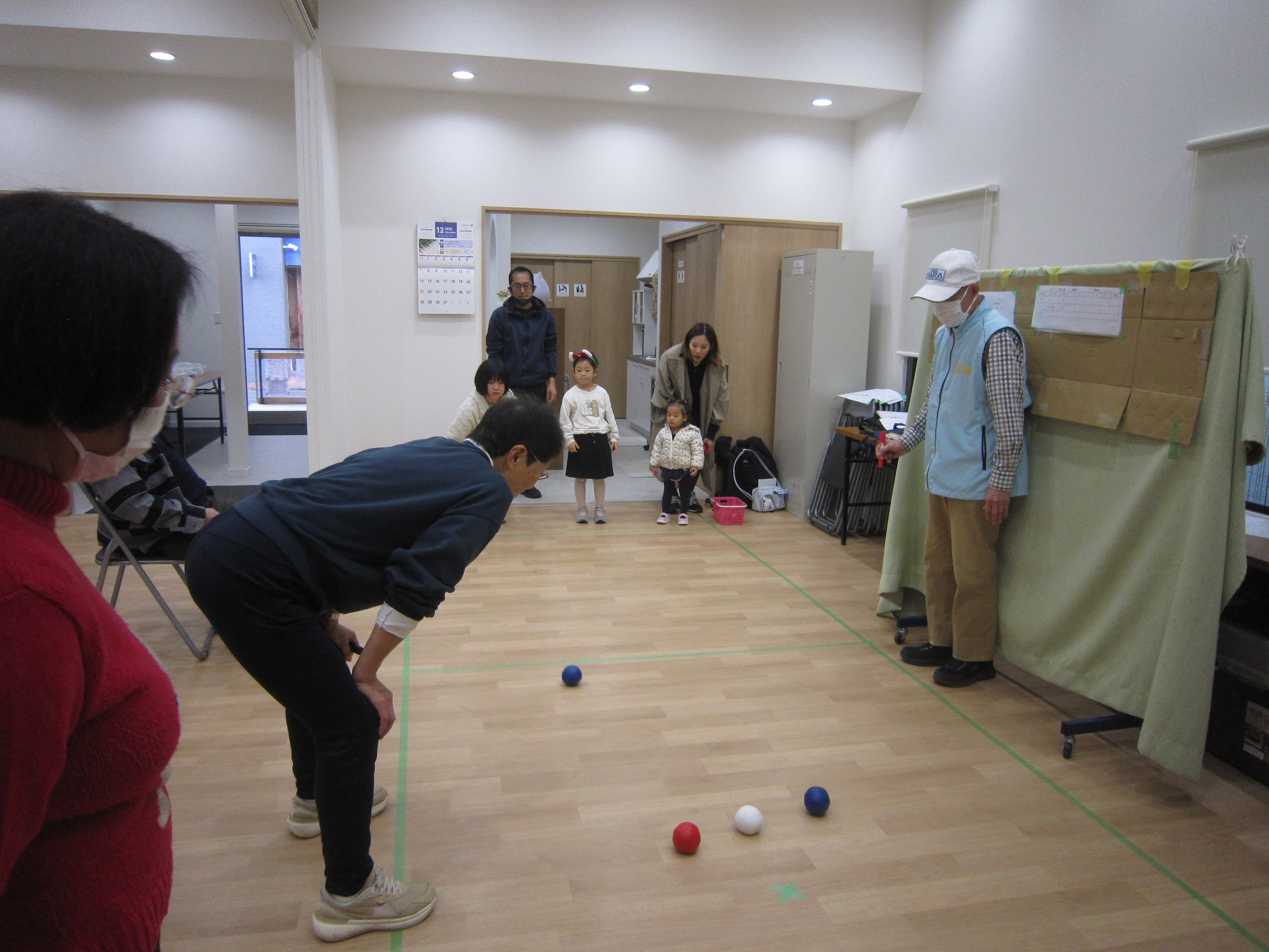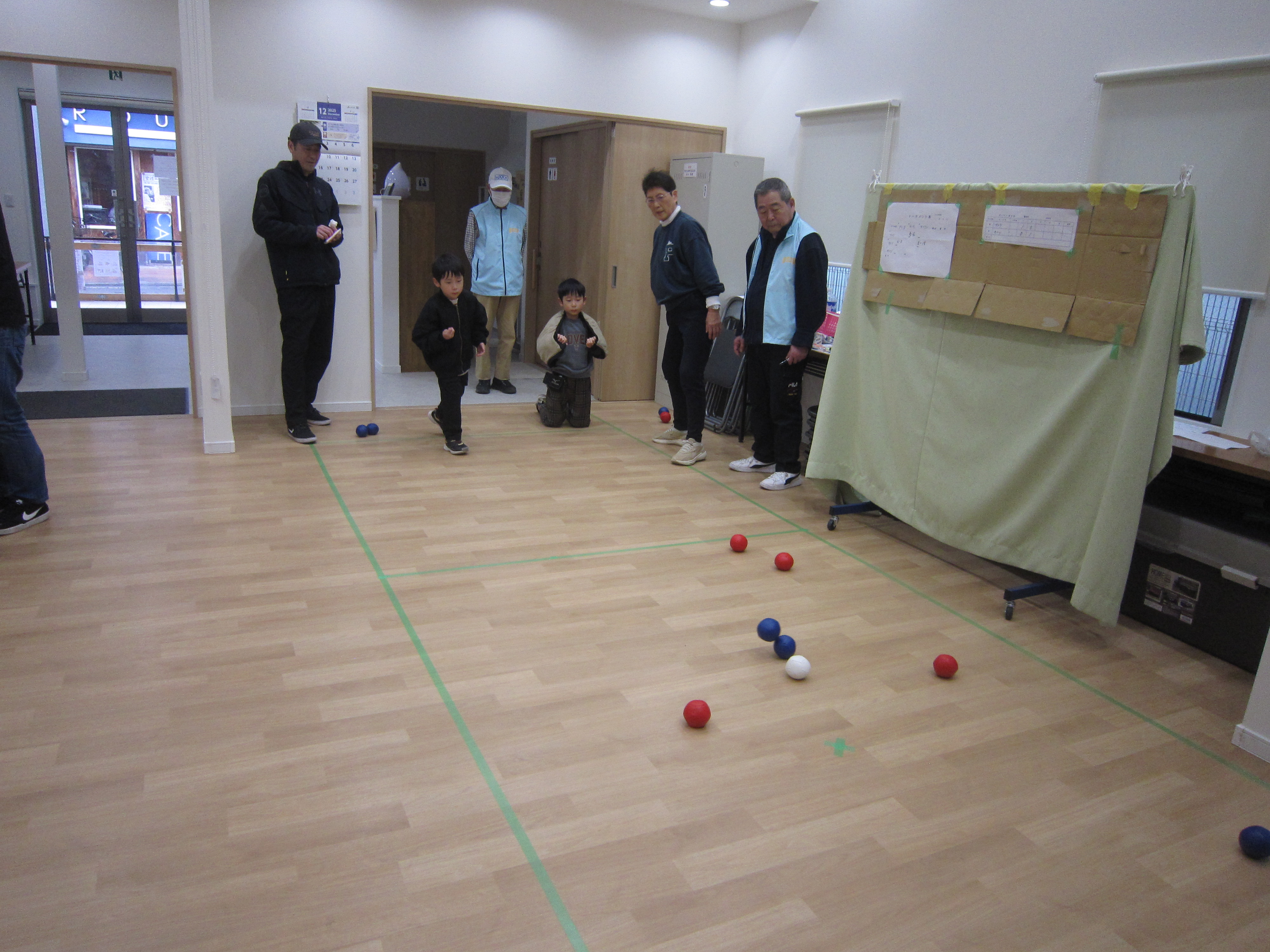 今回は好評であったボッチャをコートを広げ実施しました。参加者は親子でチームを作り熱戦を繰り広げました。特に子供たちは無心でプレーするので思わぬ結果に驚きの声が聞こえてきました。