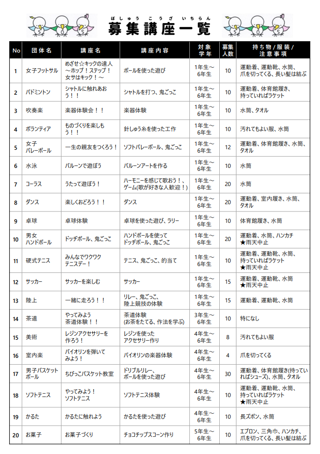 ※学年により参加できる講座が違いますので注意してください。下のチラシをご確認ください。