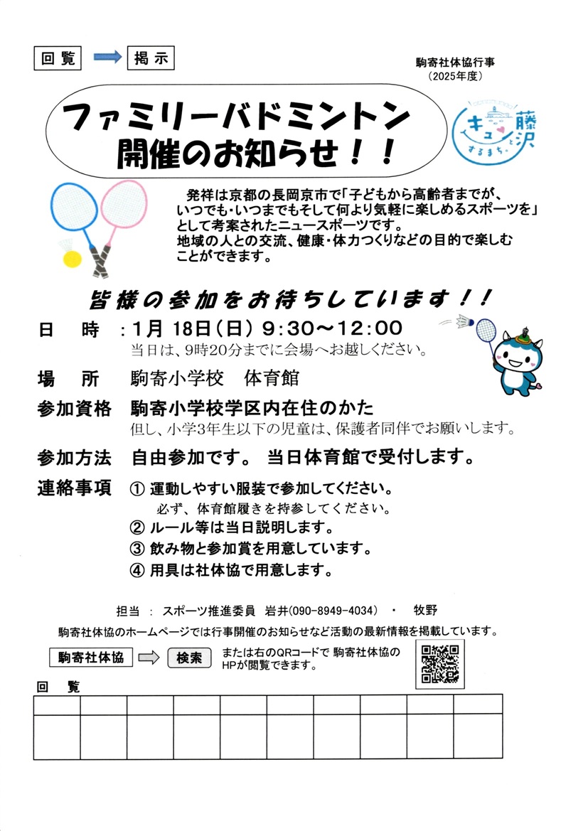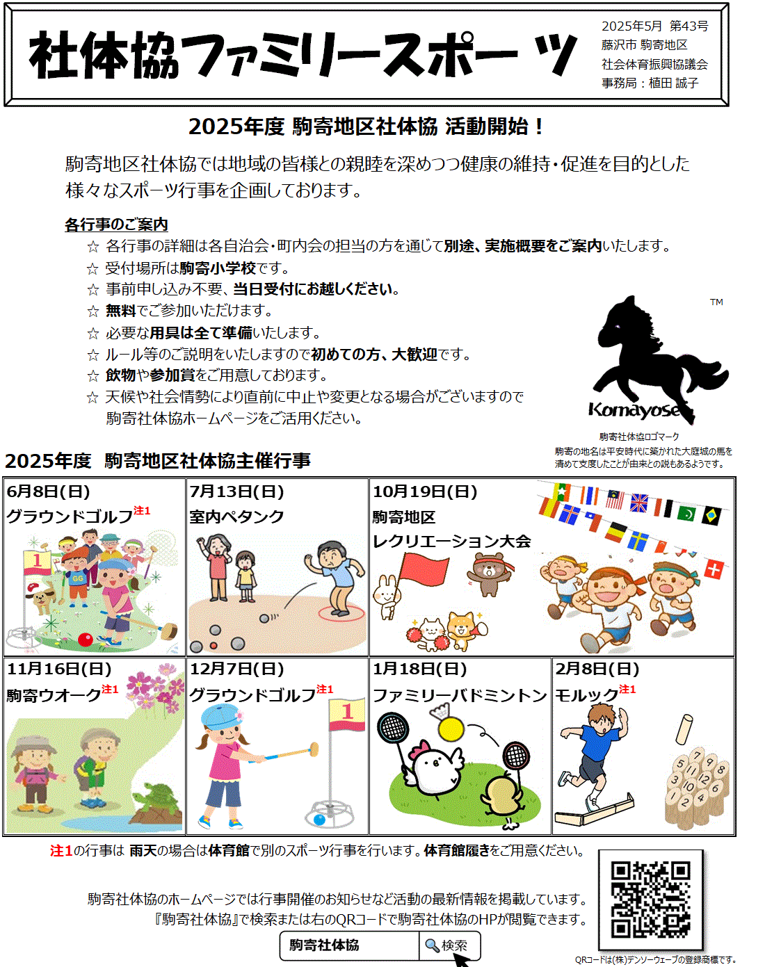 ◆社体協行事の詳細予定は右欄の「駒寄行事カレンダー」をご覧ください。