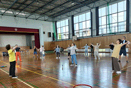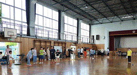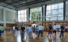 雨天時等グラウンドコンディションが悪い場合は体育館でソフトバレーボールを行います