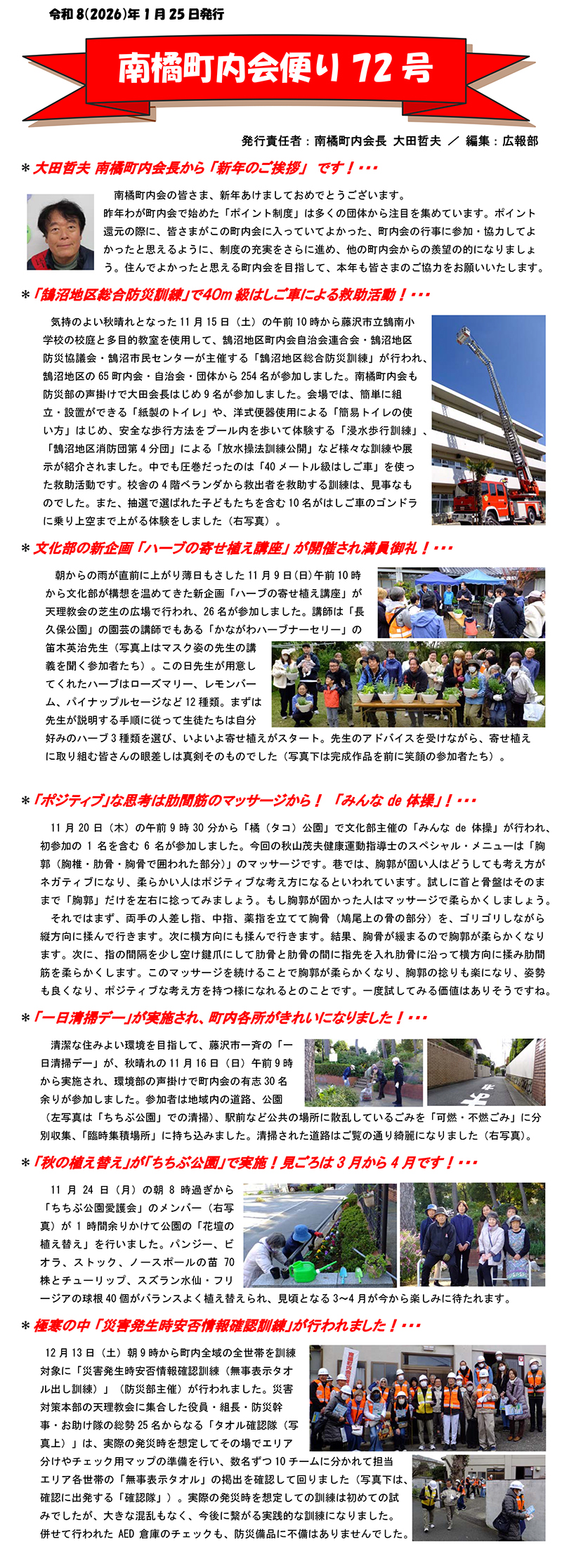「南橘町内会」創立50周年に寄せて~大田町内会会長