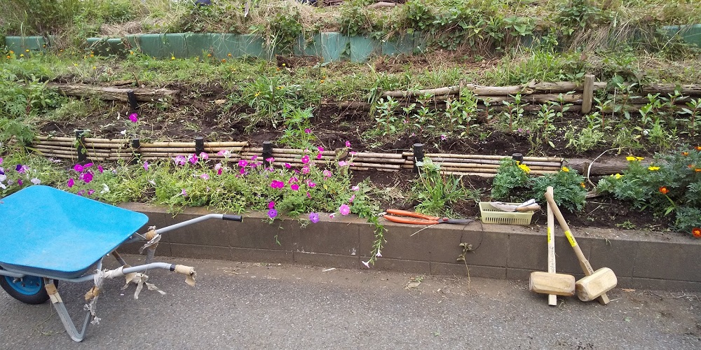 ブログ印刷2020/07/21 16:33 投稿者:snoopy竹垣延長 7/16の見本にしたがい、竹垣を延長しました。 写っているのは延長部分です。 延長部分は擬木杭を使ってみました。 如雨露から右側が前回設置部分。左が今回作業の部分。 コメント (0) コメントコメントする 湘南大庭フラコムメイトへ戻る