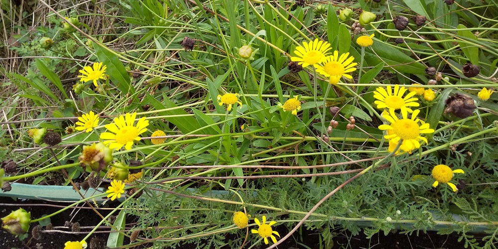 ブログ印刷2020/07/24 11:36 投稿者:snoopy土手にある花 月見草 (背が高く黄色の花が咲くのは宵待草です。) ダイヤーズカモミール 白い花の咲く、ジャーマンカモミール、ローマンカモミール のような香りはありません。花は染色用に使えます。 ミント ひまわり(1本目)と全景 マリードールドとニチニチソウがよく咲いています。 ひまわり(2本目)7/24定植しました。 左側はローズマリー。左下は千日紅。 コメント (0) コメントコメントする 湘南大庭フラコムメイトへ戻る