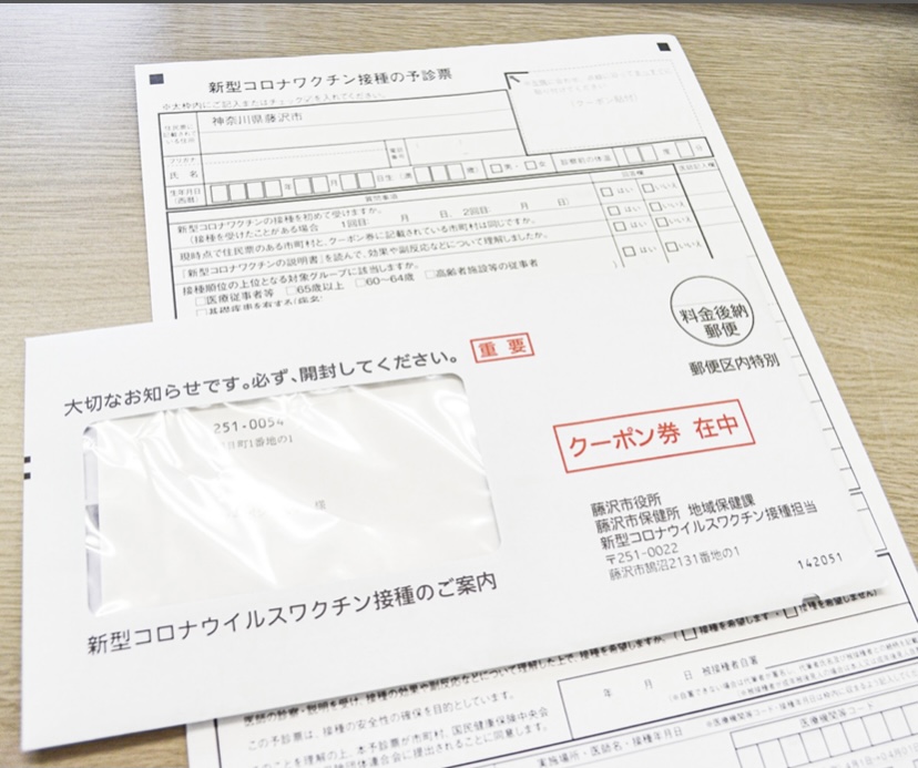 藤沢市は「かかりつけ医」(一覧表記載の病院、医院、診療所)に電話して予約をすれば接種することが出来ます。年齢順に藤沢市からご自宅に封筒が郵送されてきます。