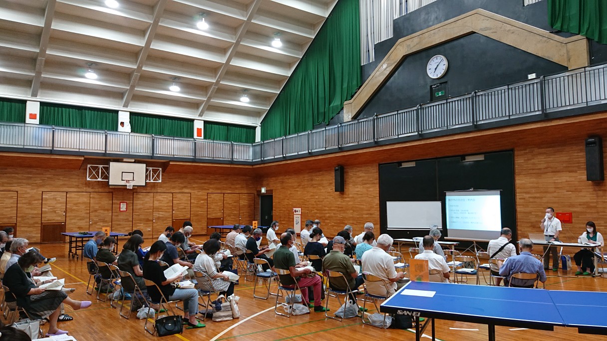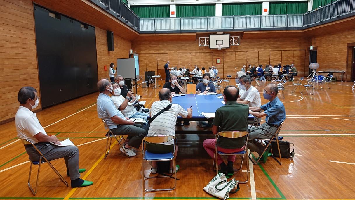 19:00より、湘南大庭市民センター、体育室にて、約50名、十分な距離を