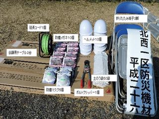 北西1区公民館に自主防災機材倉庫を設置しました。