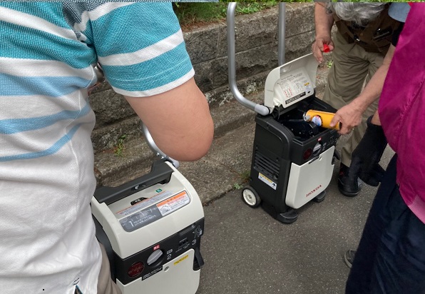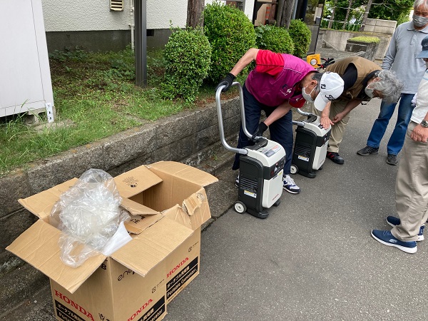 発電機のチェックを行うことになっていたので、倉庫から2台取り出して、運転テストです。
