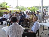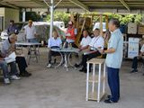 平成29年9月1日(金)自主防災機器倉庫前、午前10時開会。最初に各組長及び役員(約35名)に自主防災訓練の意義について仮屋区長から説明がありました。 前田副市長の挨拶に続き、倉田区長会長は挨拶の中で、地域での助け合いとしての自主防災組織の重要性と防災訓練を行う事の大事さを述べられた。自主防災組織の説明と災害事の避難と連絡体制についての説明を黒木副会長(情報収集班・避難・看護班)から報告がありました。機器倉庫の機器類と数量について、松田副会長(消火班)報告されました。防災マップと消火訓練については小林市SVCセンターから説明と、消火器の訓練が行われました。