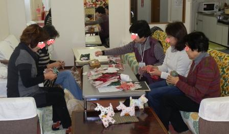 ブログ印刷2011/11/15 08:45 投稿者:ボラセン01ある日のチクチク 11月11日(金)小物作りの好きな皆さん、お弁当持参でチクチクでした。手前に作品が写っていますが・・・?少々拡大してみましょう。ワンちゃんのようです。このワンちゃんが、ボラセンにくる可愛いお子さんの手に渡る日も近いようです。 片瀬地区ボランティアセンターへ戻る