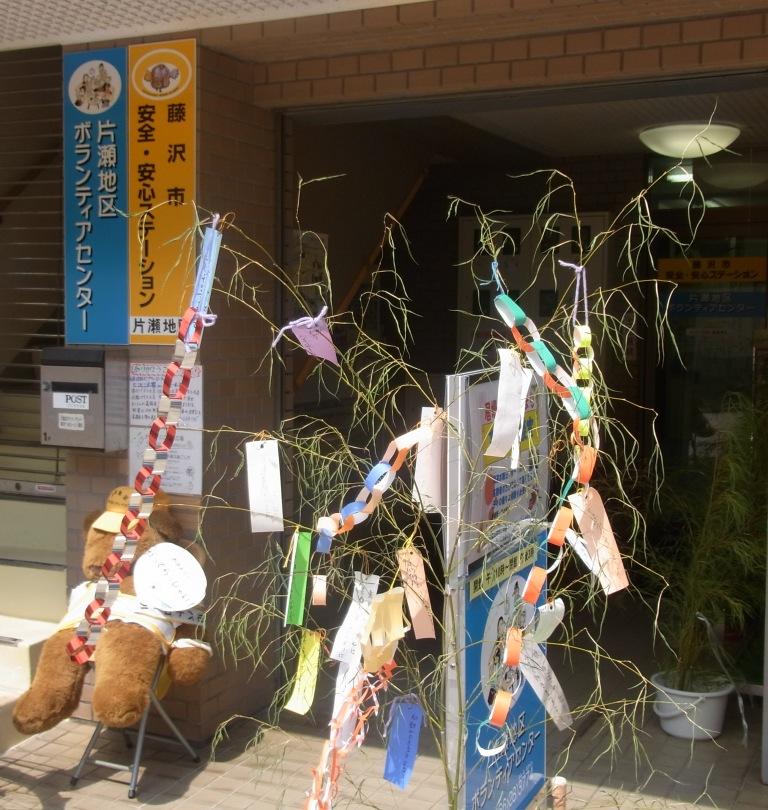 とおりすがりの皆さんにも短冊を書いていただいています。