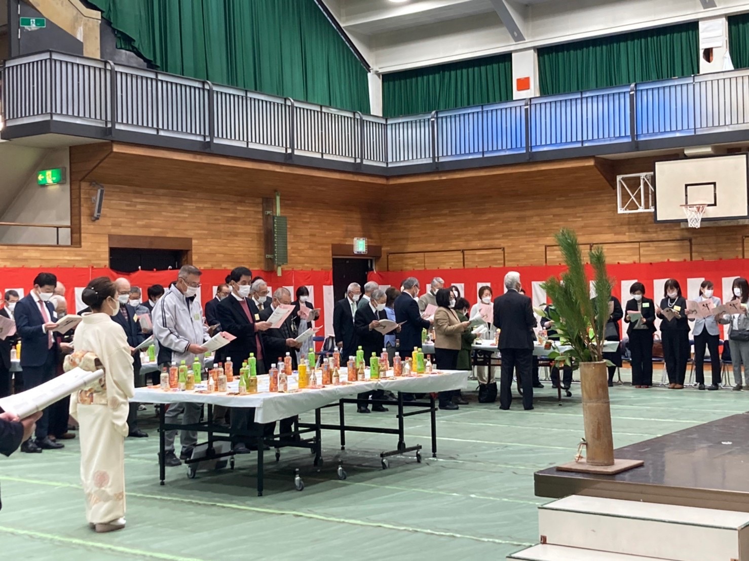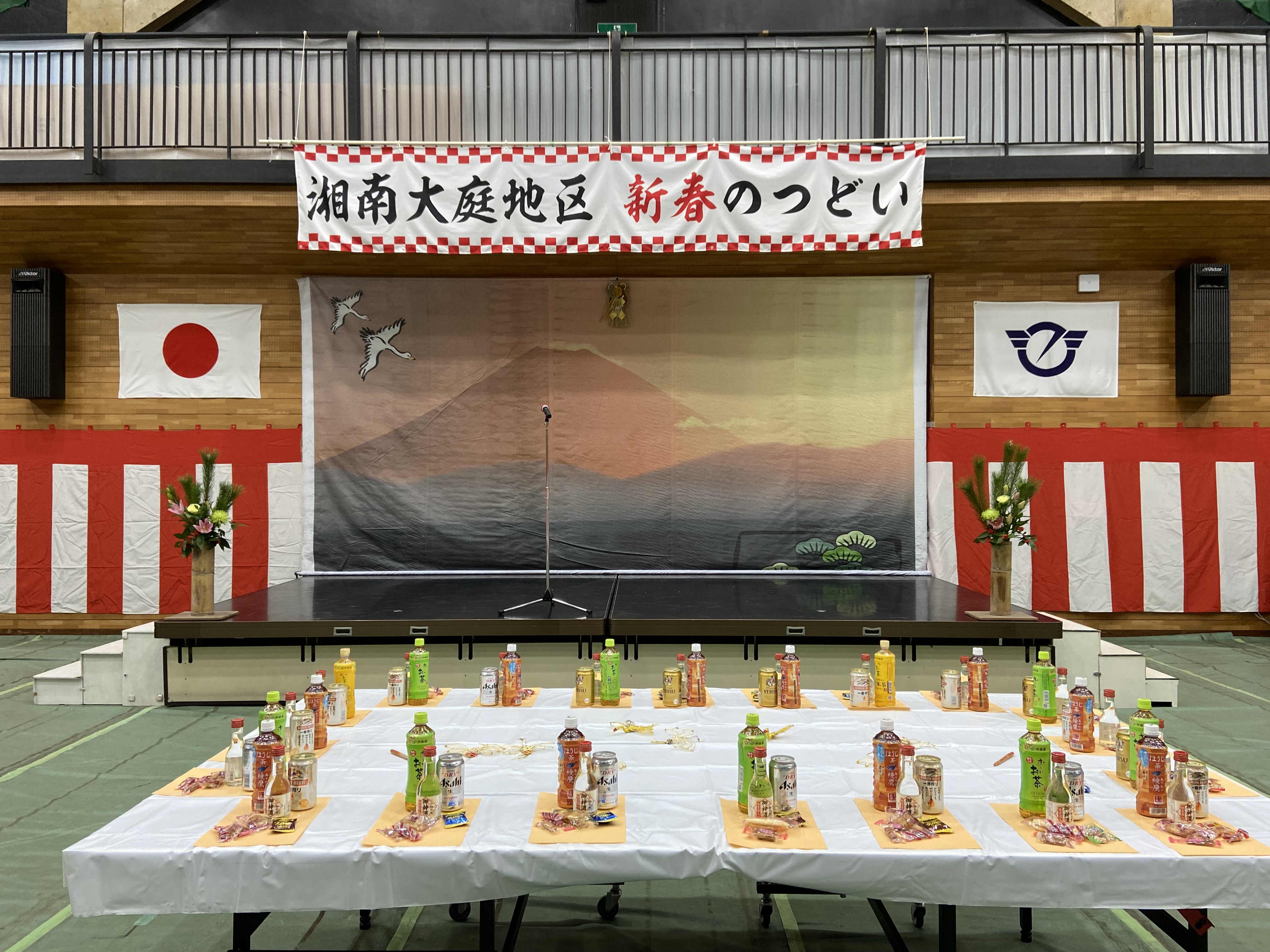 3年ぶりの開催、前日準備も久しぶりでした。シート敷きから舞台、装飾、テーブルセットなど1つずつ確認しながら役員、団体有志と行いました。