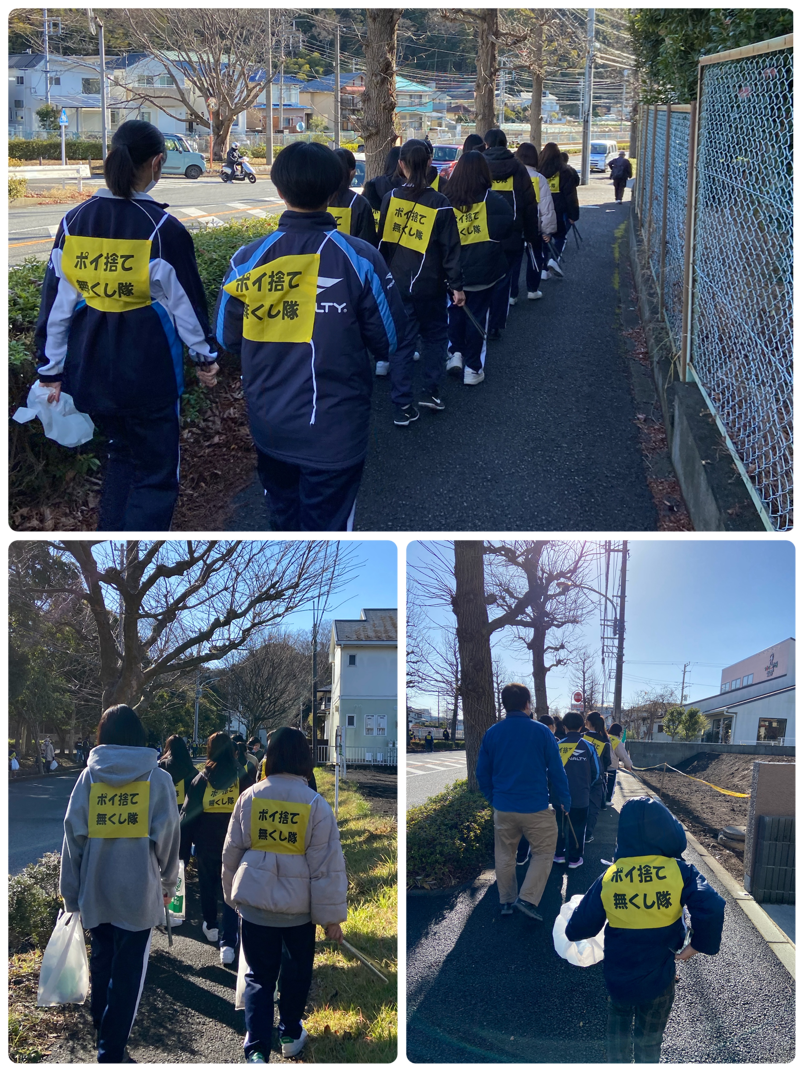 今回が初めての参加とお聞きし、フットサル部、ダンス同好会の1年生、引率されていた先生とAコースに入り、自治会の生活環境役員の方や親子で参加されている方々と舟地蔵公園周辺へ。