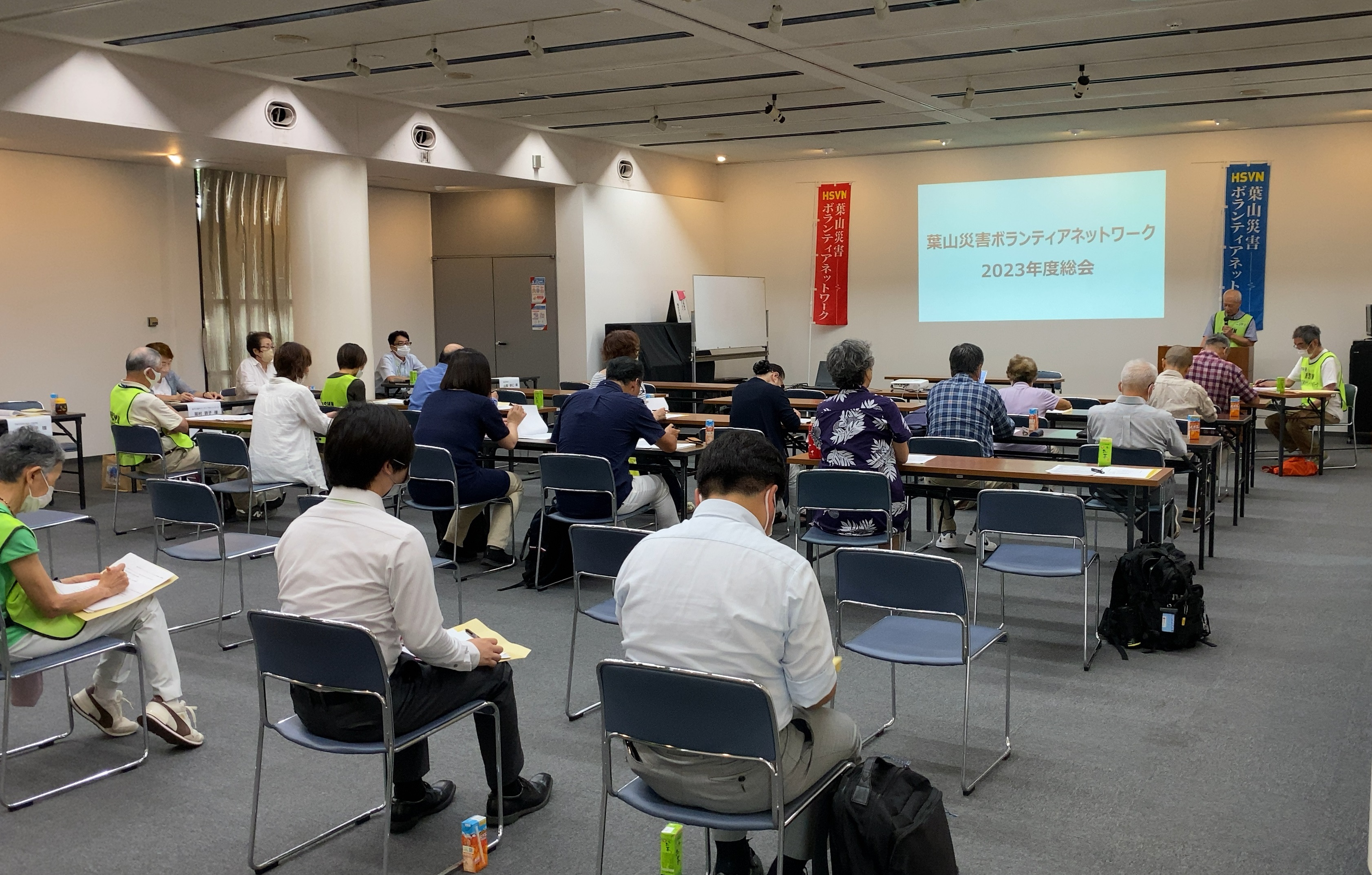 HSVN2023年度総会は6月18日福祉文化会館大会議室にて出席者20名、委任状提出者21名によって行われ、全ての議案が賛成多数をもって可決されました。皆様のご協力に感謝します。総会には町長、社協局長をはじめ町内防災団体、他地域災害ボラネットなど7団体12名の方々にもご臨席いただき、昨年度活動報告・今年度活動計画についての説明を見守っていただきました。