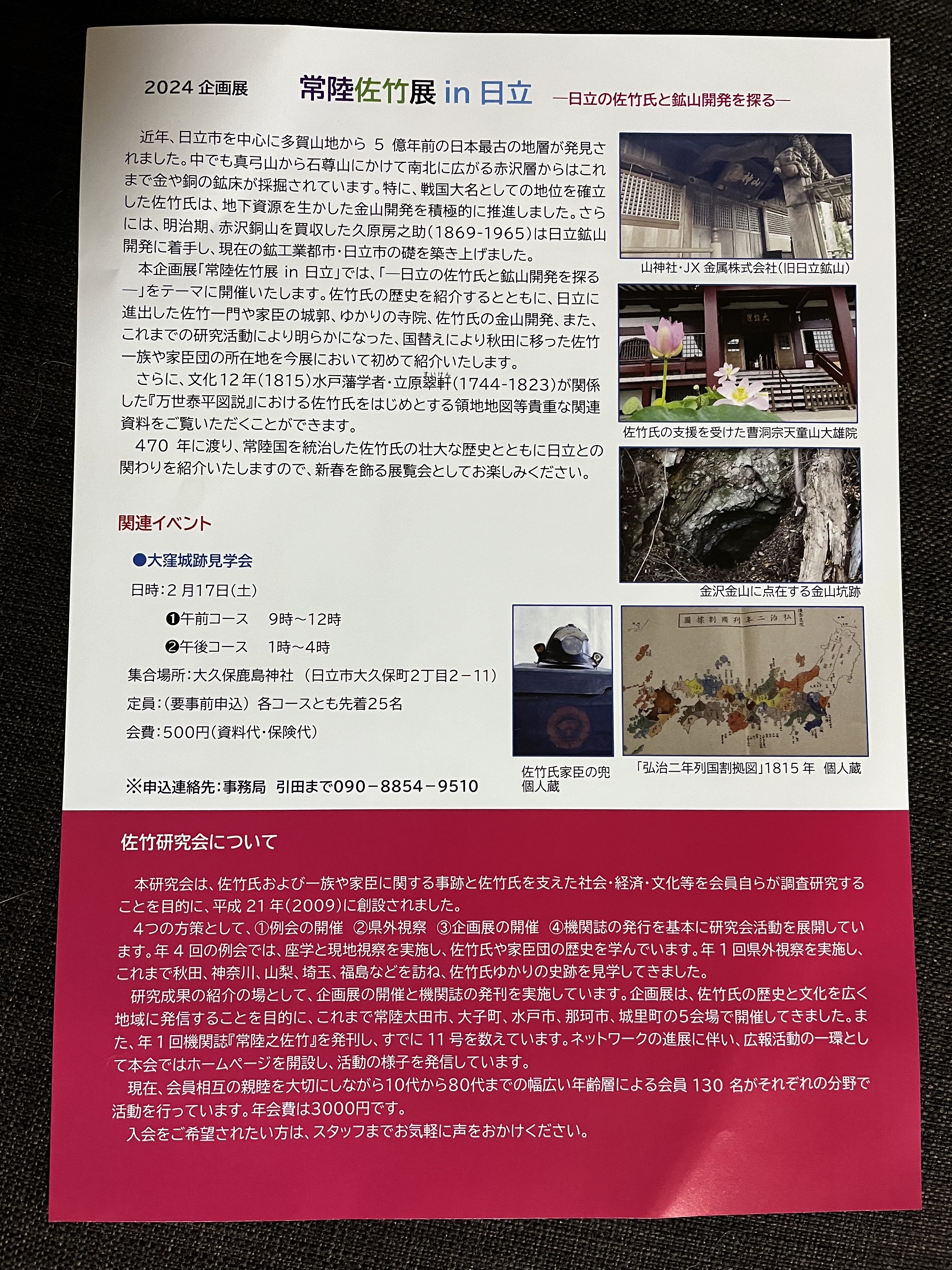 題名:2024企画展「常陸佐竹展 in 日立 〜日立の佐竹氏と鉱山開発を探る〜」