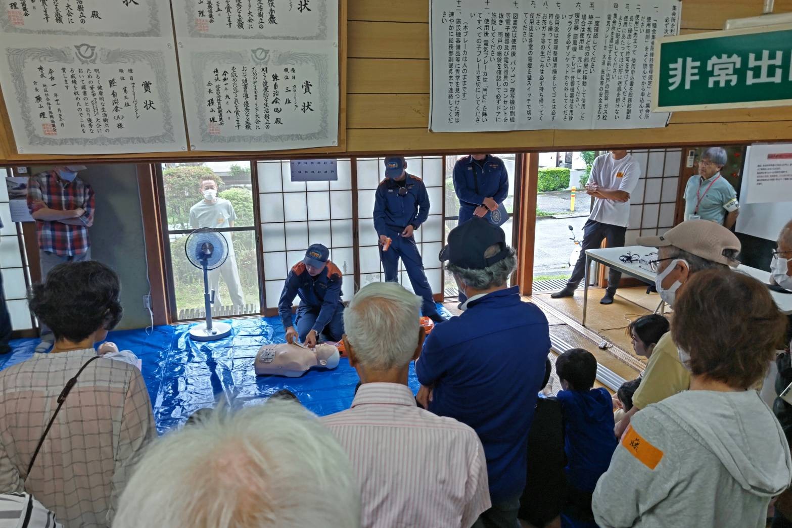 合同防災訓練を雨天のため、集会所にて開催しました。