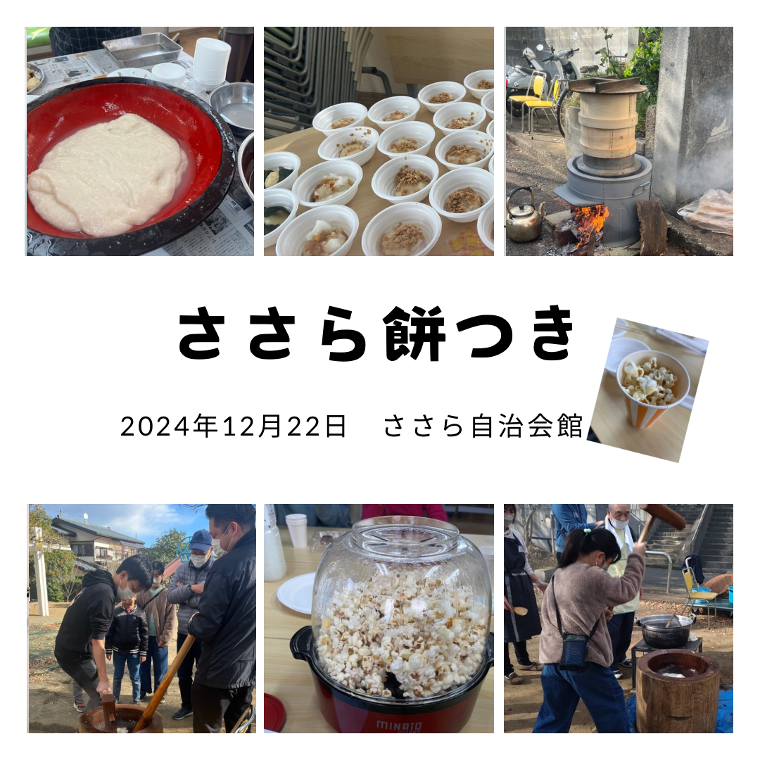 回覧・配布印刷2024/12/22 19:02 投稿者:ささら自治会ささら餅つき開催しました 2024年12月22日 ささら餅つきが開催されました! 役員、銀鈴会、友の会、ボランティアのみんなで協力してたくさんの方に、お餅を食べてもらいました〜 今年の味は、あんこ、磯辺、きなこ、大根おろし、納豆でした〜 出来立てポップコーンも子供たちに大好評! これからも、お餅で地域のつながりができるといいですね⭐︎ 藤沢市 ささら自治会へ戻る