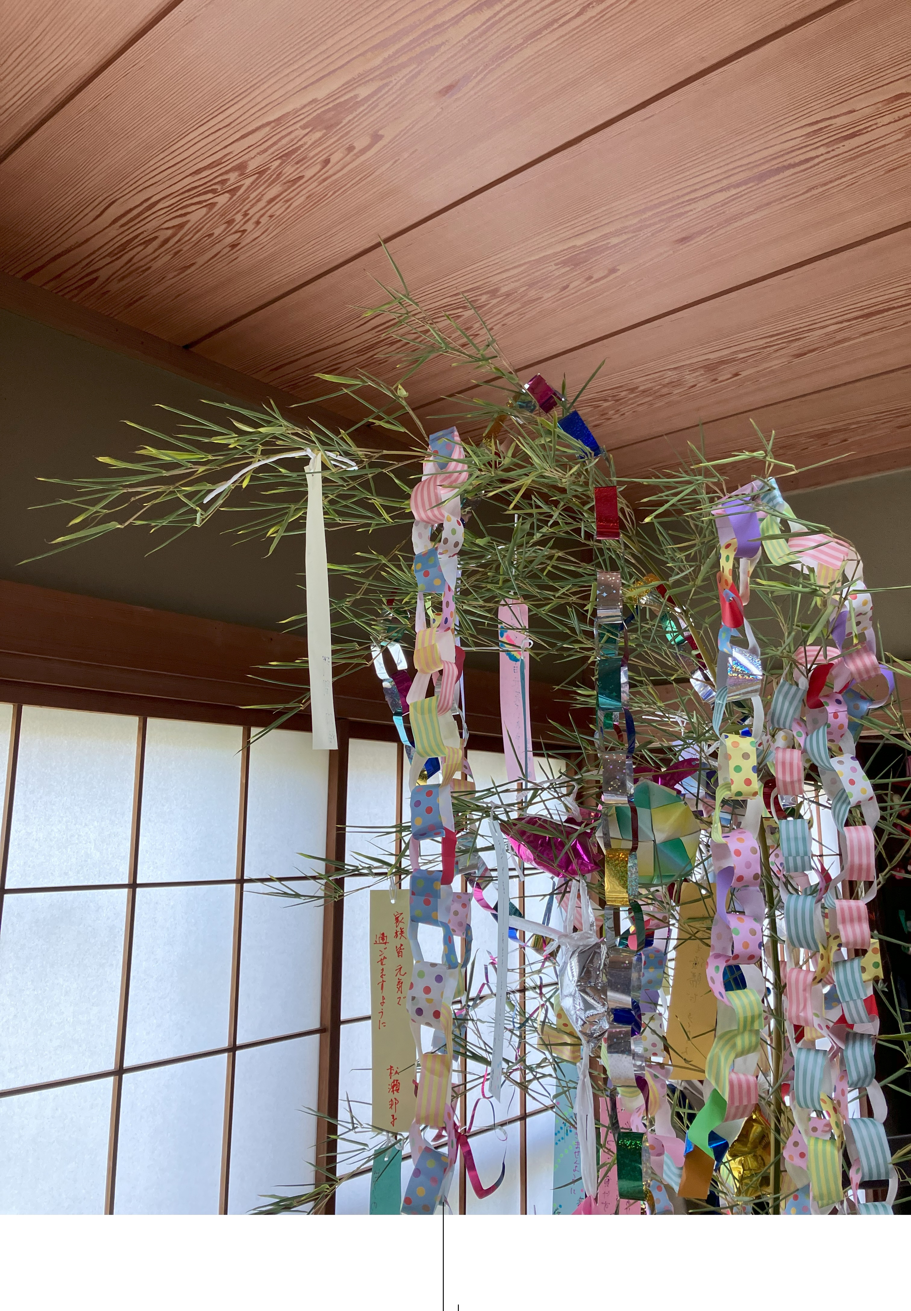 たくさんのちびっ子が短冊に願い事を書いて、笹に結んでいました。
