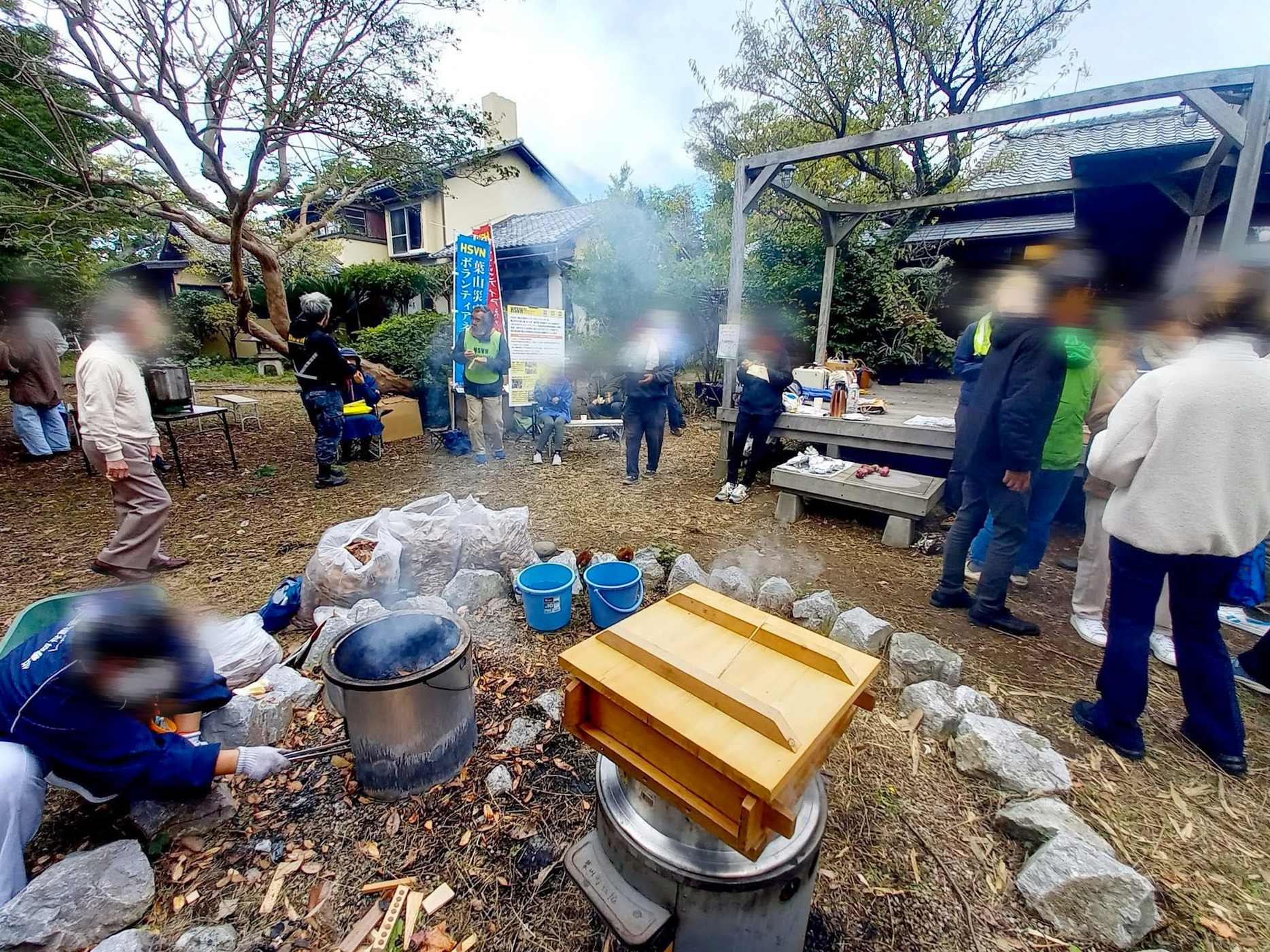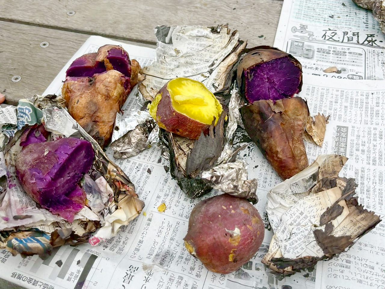 「ほりうち地域交流会」は堀内地区で活動するさまざまな団体が参加する催しで、第5水曜日に開催されており、秋の《収穫祭》では、各団体の活動のほかに、同所の畑で採れた芋を焼いたり蒸したりして参加者に振る舞われます。