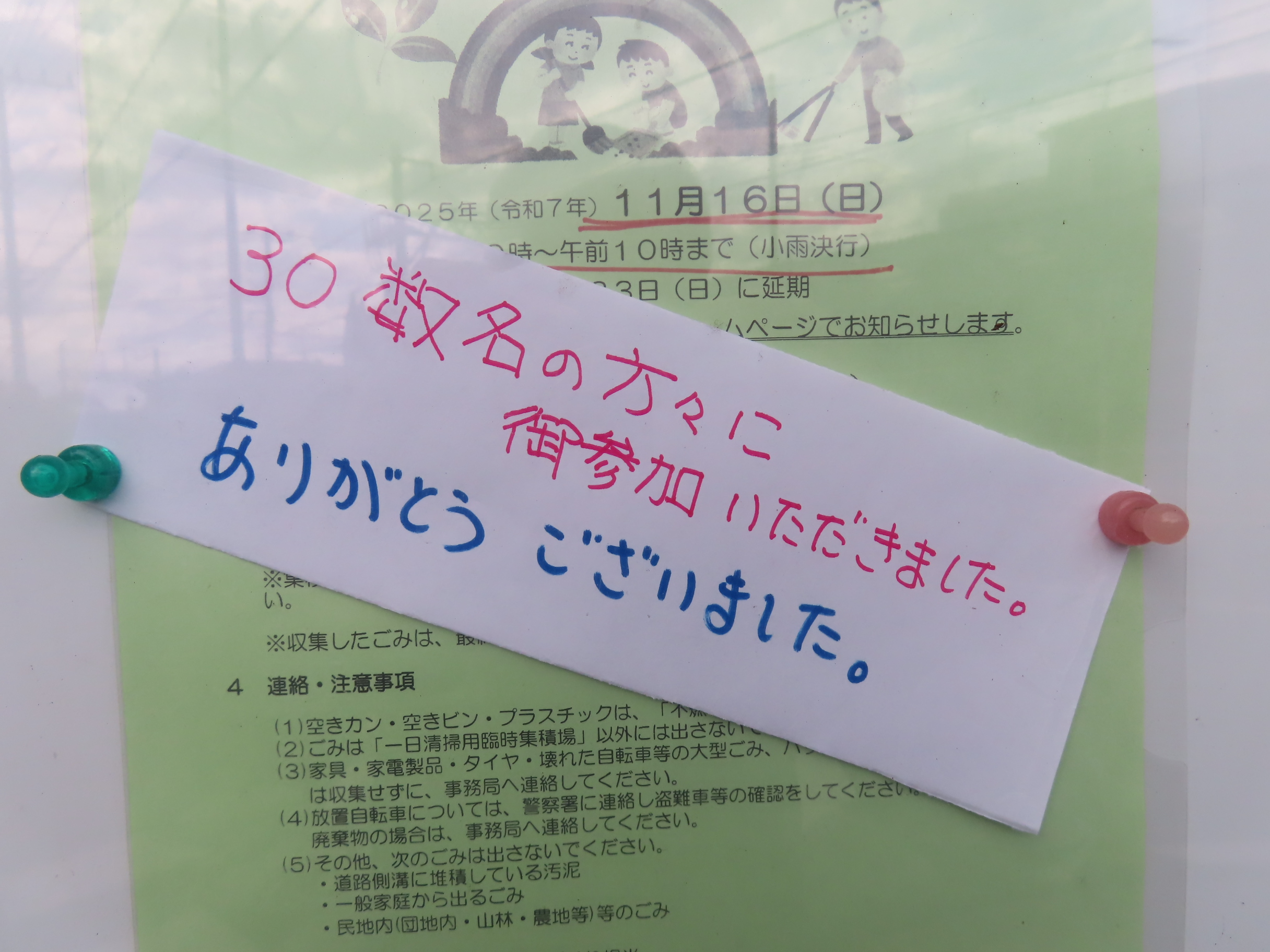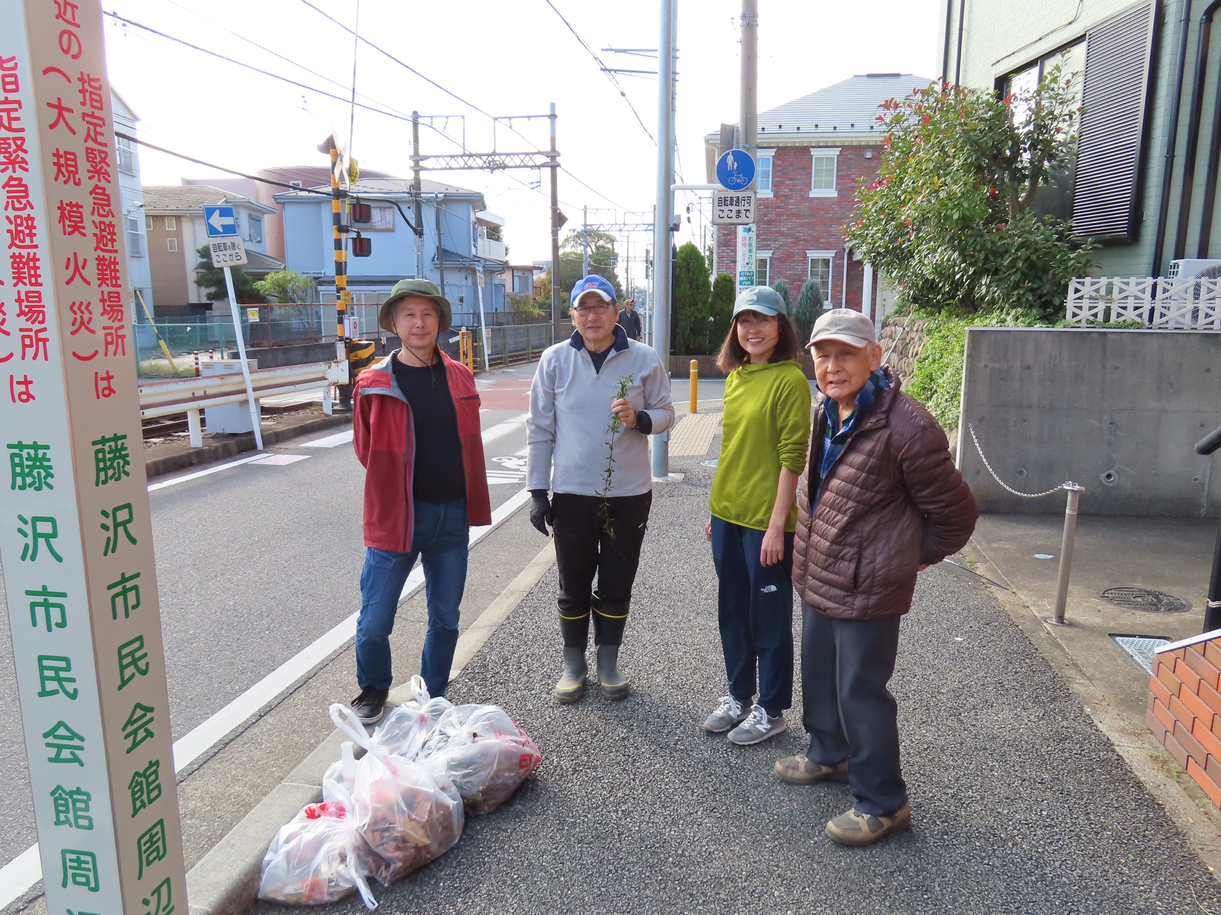 秋晴れの11月16日(日)午前9時~10時まで「一日清掃デー」が町内各所の道路・公園などで実施されました。「一日清掃デー」は清潔で住み良い環境を目指して全市一斉に行われ、南橘町内会は環境部の呼びかけで30数名が参加。参加者は「ちちぶ公園」「タコ公園」「石上駅周辺」ほか町内各所で枯葉やゴミを「可燃・不燃」に分別して収集し「臨時集積所(鵠沼中学校と石上駅そば)」に持ち込みました。皆さんのおかげで町内はとてもきれいにすっきりしました。ありがとうございました!お疲れ様でした!年3回の海岸清掃と一日清掃デーの音頭とり・資源ごみ集積場所管理など地域の環境保全に尽力されている環境部さん、今年も一年ありがとうございました!