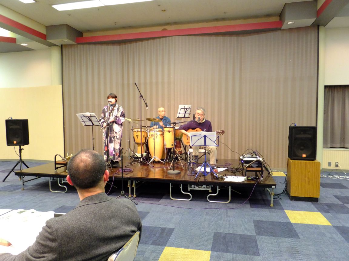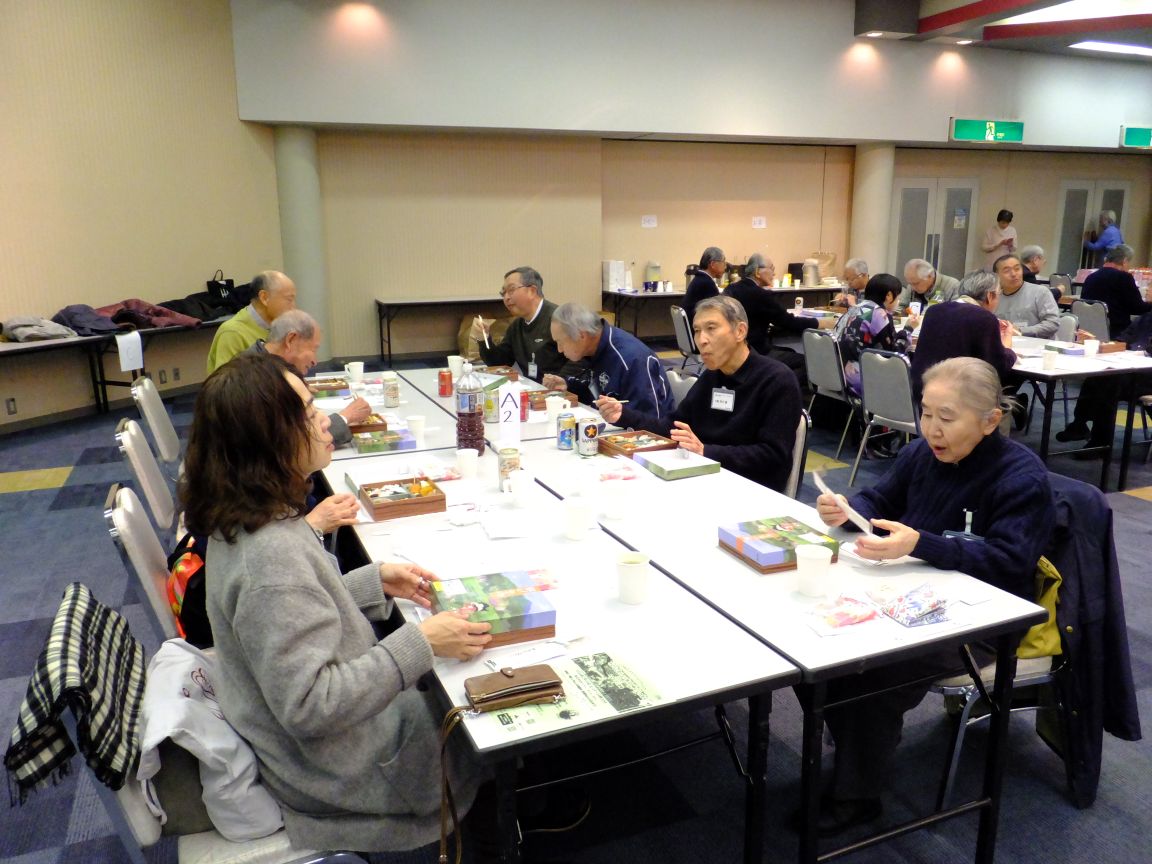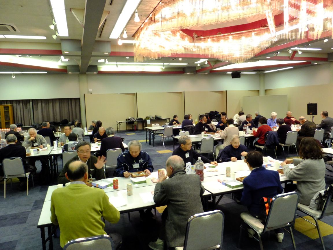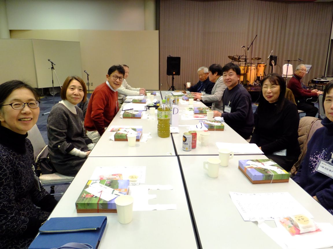 1月31日(土)午後6時から「新年交流会」が藤沢市民会館第1展示集会室で開催され大田会長はじめ役員・組長と町内ボランティア総勢47名の方が参加しました。「新年交流会」は組長・広報物配布担当・防犯パトロール・防災幹事・お助け隊・公園愛護会・おはようボランティアなど町内のボランティア活動にご協力頂いている方々へ、ささやかながら年に一度の感謝と労いの会です。普段なかなか一同には集えない皆さんですが、町内会の事に限らず様々な話題で和やかに歓談されていました。途中のバンド演奏は会に花を添え、司会者無茶ぶりの「1人1分スピーチ?」はしどろもどろながらも大いに盛り上がりました。皆さん、ご参加いただきありがとうございました!そしてお疲れ様でした。会場スタッフの役員の皆さん、お疲れ様でした。今年も1年、南橘町内会を宜しくお願いいたします。