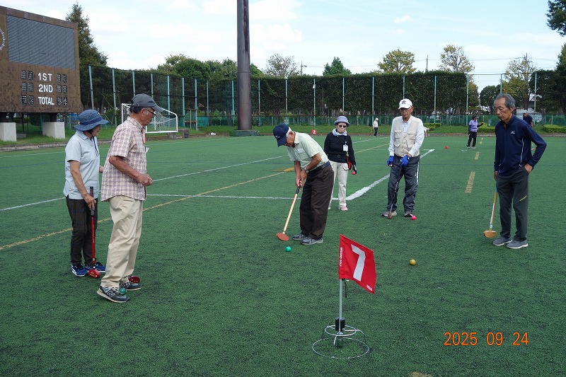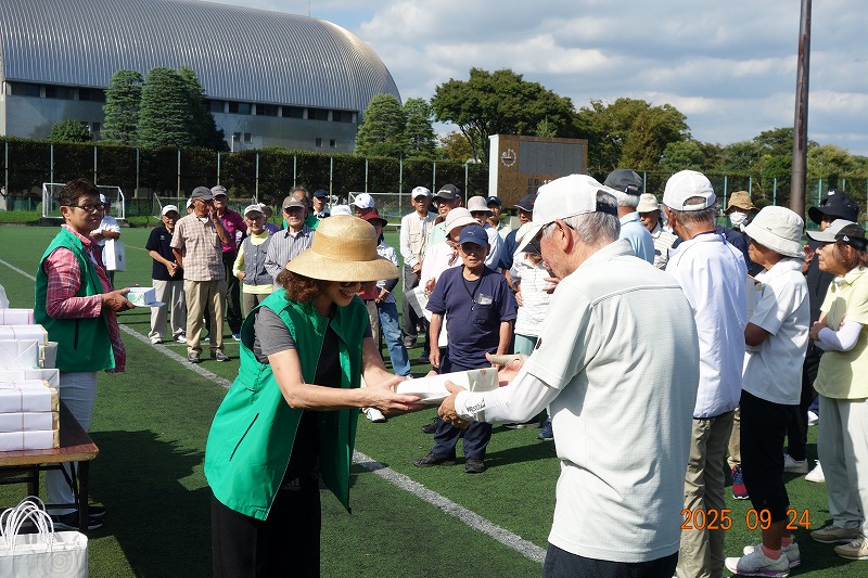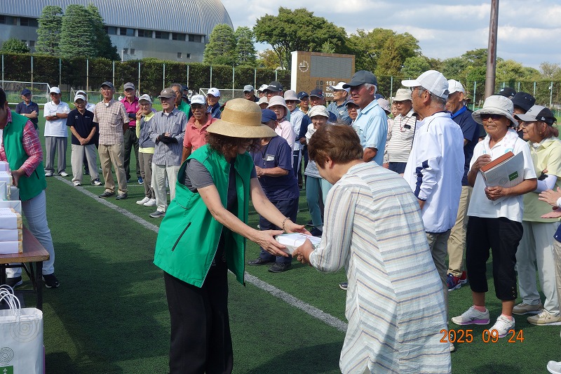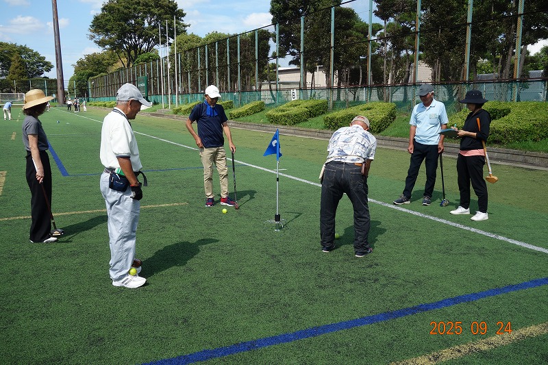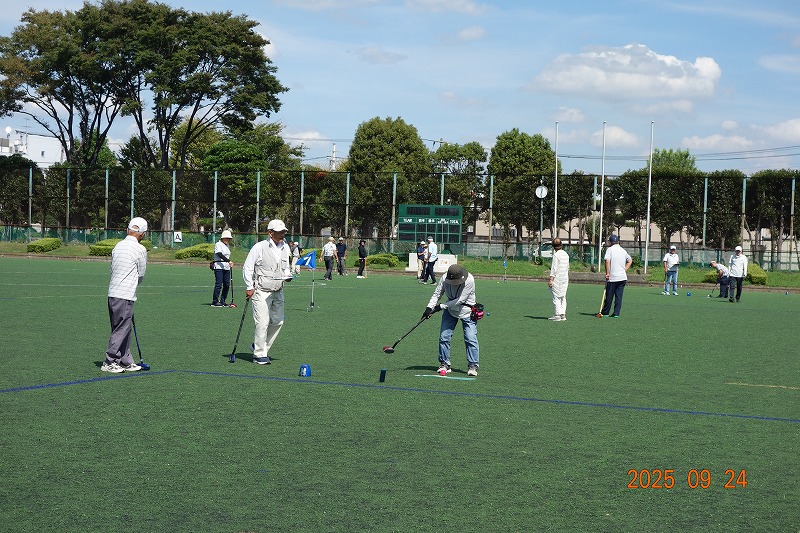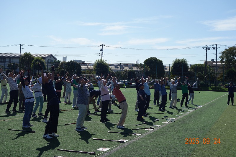 地区内の高齢者のふれあいの場として、今年も恒例のグラウンドゴルフ大会が開催されました。競技を通じてスポーツの楽しさを味わい、健康づくりに役立てるとともに、参加者同士の親睦を深めることを目的としたこの大会には、97名もの方々が参加しました。例年にない厳しい猛暑が続いていたため、大会当日の気温が心配されましたが、当日は暑さもやや和らぎ、朝のうちはスポーツを楽しむのに最適な気候となりました。