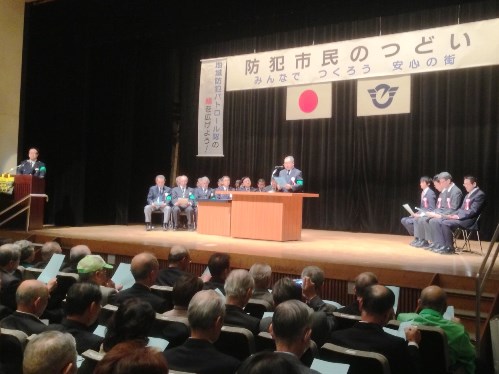 次の大会宣言では、当地区防犯協会の高木会長が代表して宣言案を読み上げるという大役を果たし、満場一致で宣言が採択されました。