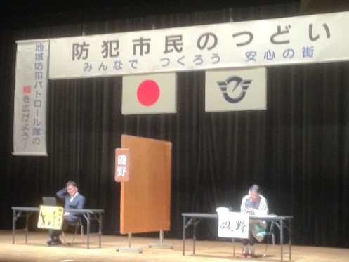 第2部のアトラクションでは、多摩大学の学生パトロール隊「たまパト」による防犯寸劇をはじめ、防犯落語やサックス演奏があり、短い時間ではあり、楽しいひとときを過ごすことができました。
