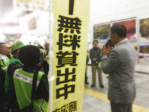 ブログ印刷2014/10/31 09:33 投稿者:片瀬ポータル管理者02藤沢駅での防犯街頭キャンペーンに参加してきました!2014年10月30日・31日の両日、犯罪のない安全・安心まちづくり対策会議主催の防犯街頭キャンペーンに参加してきました。JR藤沢駅のコンコース(自由通路)において、防犯グッズを配布しながら犯罪の未然防止と防犯意識向上について呼びかけを行ってきました。初日には、鈴木市長も激励に駆けつけていただき、参加者一同士気を高めての啓発活動となりました。また、藤沢市の安全安心情報サイトにも活動の様子が掲載されていましたので、ご覧ください。http://safety-fujisawa.jimdo.com/過去のお知らせ一覧/防犯街頭キャンペーン/ 片瀬地区防犯協会へ戻る