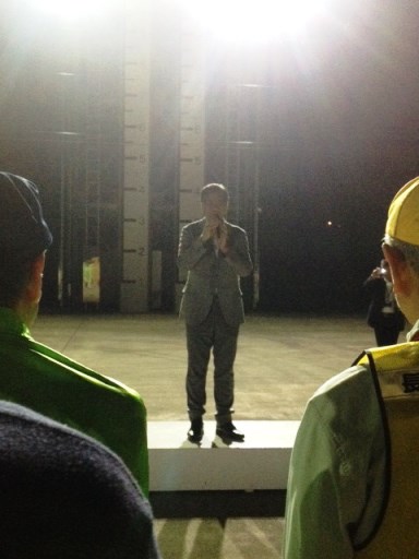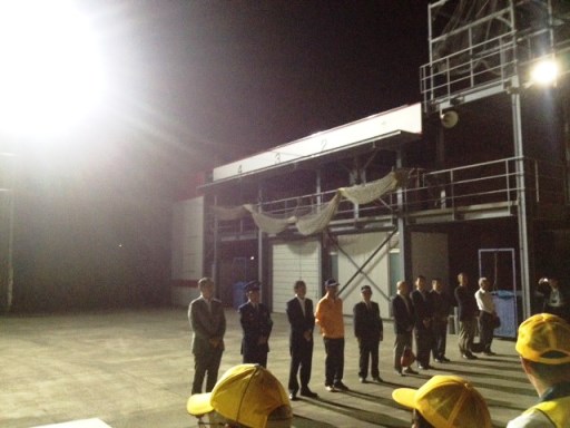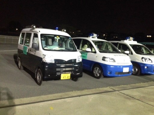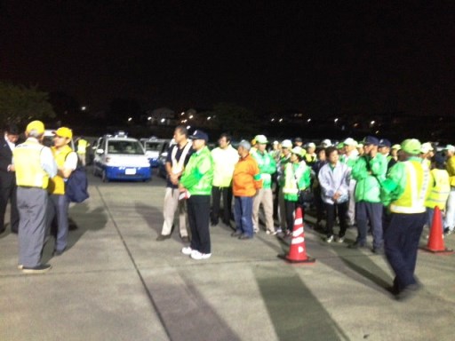 これは、市内全域で一斉の防犯パトロールを行い、市民の防犯意識高揚を図るもので、六会にある消防訓練施設へ各地区から青色回転灯装備車や防犯パトロール隊が集まり、出発式を行ったものです。