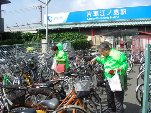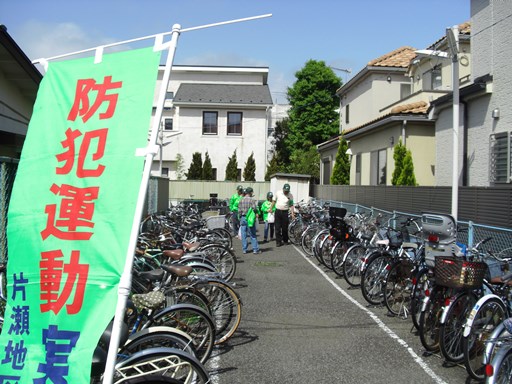 ブログ印刷2014/05/13 20:45 投稿者:片瀬ポータル管理者025/13に地域安全キャンペーン(自転車盗難防止)を実施しました!片瀬地区防犯協会では、会員(各自治町内会防犯部長,防犯協力者等)のご協力で地域安全キャンペーンを実施いたしました。活動趣旨:駐輪場における無施錠の自転車に対し、鍵をかけるよう注意喚起をするとともに、防犯意識の向上を図り、自転車盗難の防止に努めます。日時:2014年5月13日(火)14時~15時実施場所:片瀬地区内市営駐輪場3ヶ所参加者:11人 片瀬地区防犯協会へ戻る