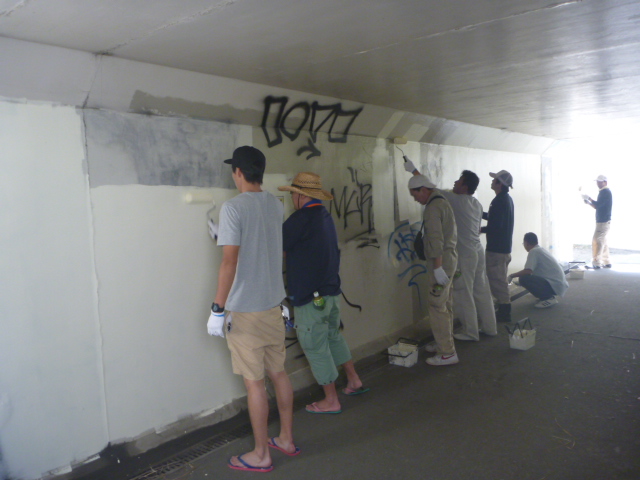 http://www.city.fujisawa.kanagawa.jp/kankyou-s/press/gomizero.html今回はらくがき消しも同時に行われ,片瀬地区の海岸かららくがきがほぼ一掃されました。