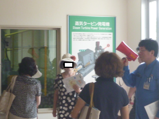 隣接されている北部環境事業所では、収集された家庭ごみを焼却し、焼却した時の熱を利用して蒸気を作り発電する工程を視察しました。