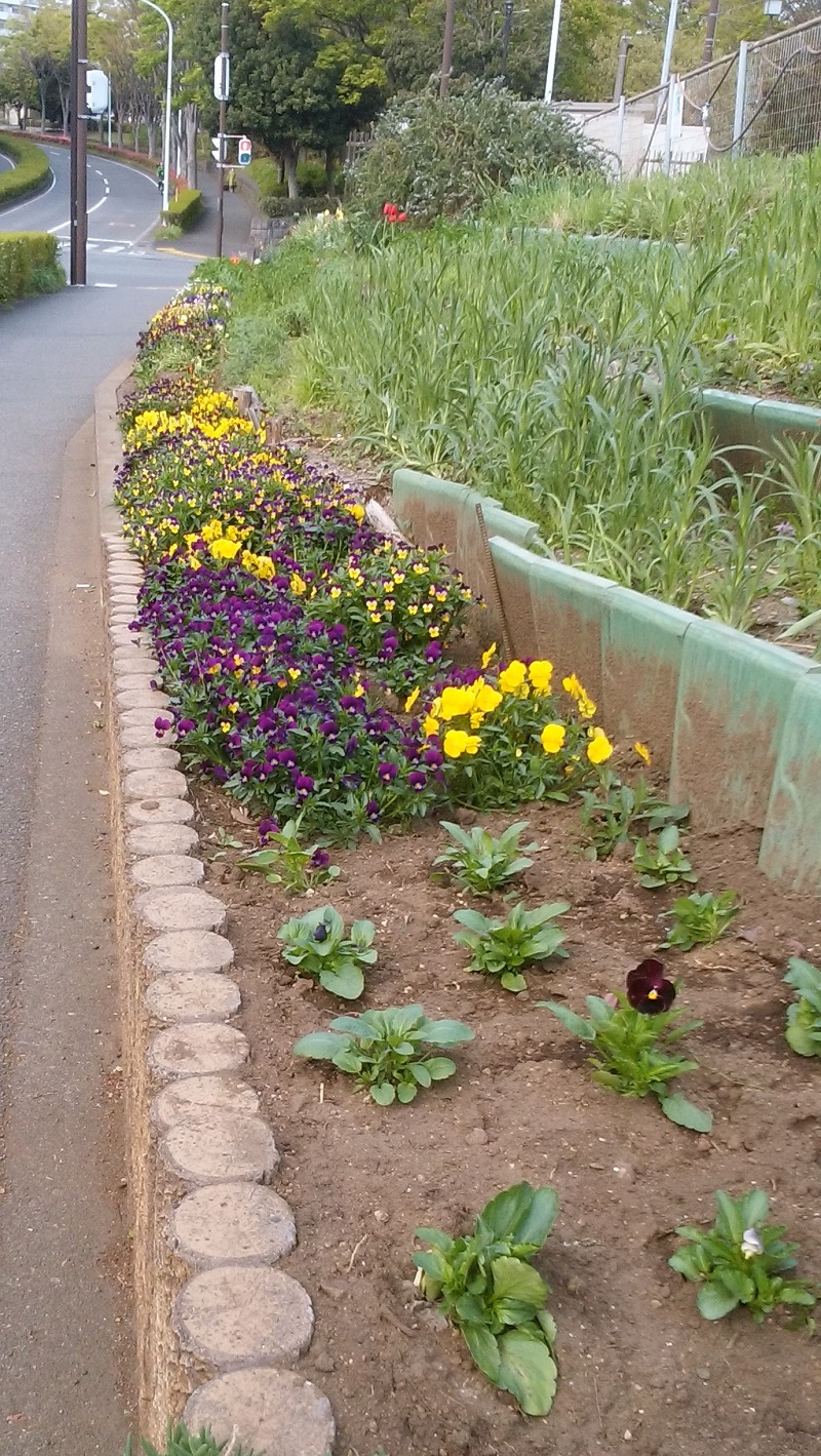 ブログ印刷2018/04/14 20:51 投稿者:snoopy4月7日(土)フラコム定例活動 土手花壇 中央花壇 ビオラ×40株を土手花壇に移植 中央花壇の枯れたハボタンの抜き取り 中央三角花壇に長久保公園からパンジー苗を移植(長久保公園から、前の週) 土手花壇、中央花壇の雑草抜き取り コメント (0) コメントコメントする 湘南大庭フラコムメイトへ戻る
