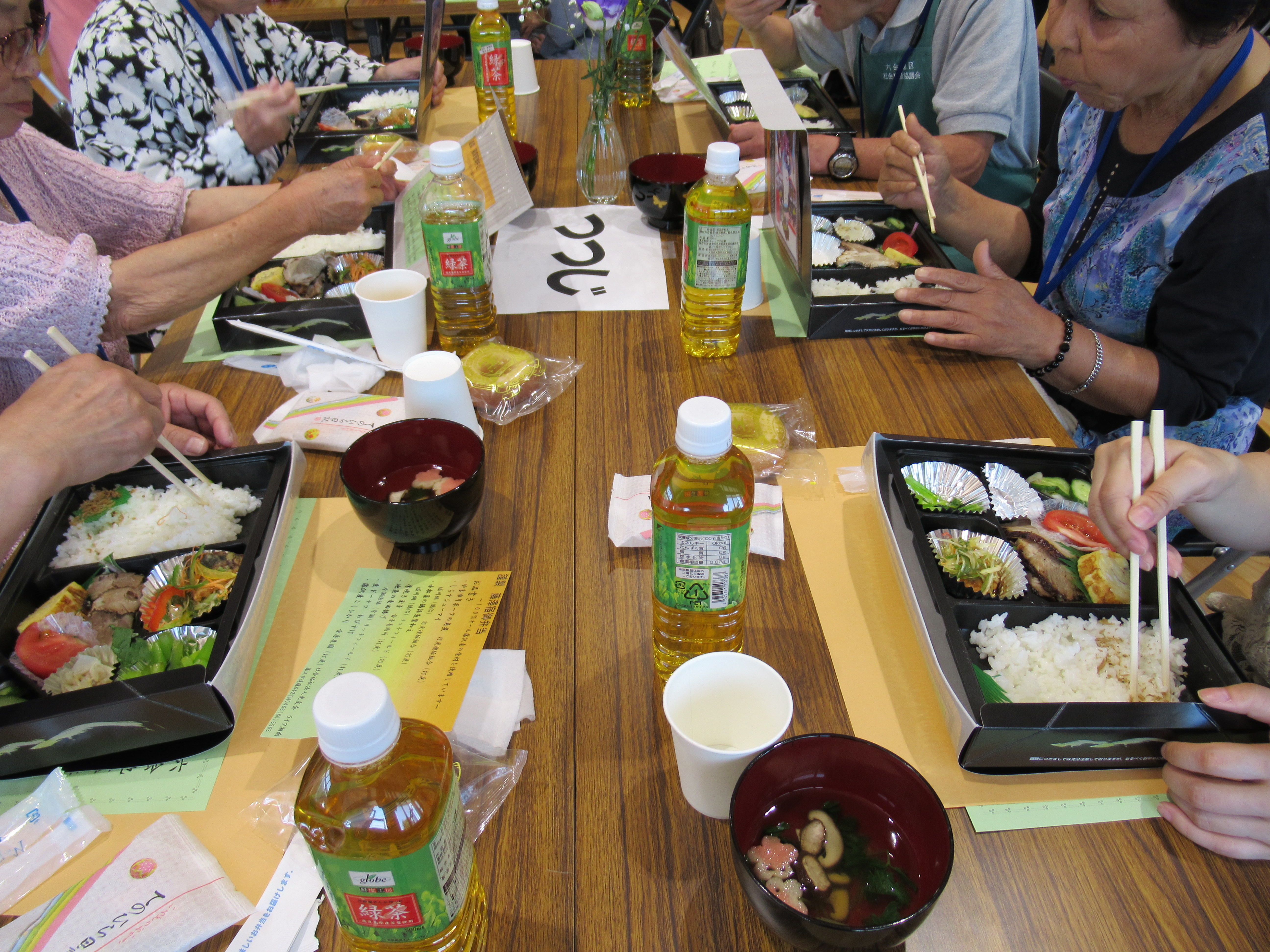 地区内に住む一人暮らしの高齢者の方々をお招きし、お弁当を味わいながら、おしゃべりをしたり余興を楽しんだりして、有意義なひととき過ごしていただきました。