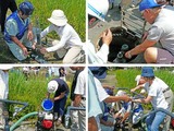 災害の発生時に、迅速かつ適切な給水活動を行えるよう、7月30日に100t水槽の操作訓練を行いました。地域の防災関係者が集まり、藤沢市管工事業協同組合の方々に、水槽の開け方、設備設置やポンプ使用法などを指導いただきました。