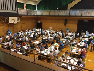 「自主防災組織用」「避難施設運営委員会向け」「拠点本部向け」と詳細な資料の作成、約3時間にわたる図上訓練の綿密な構成と進行。