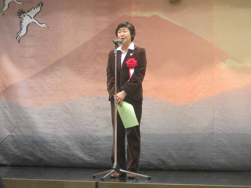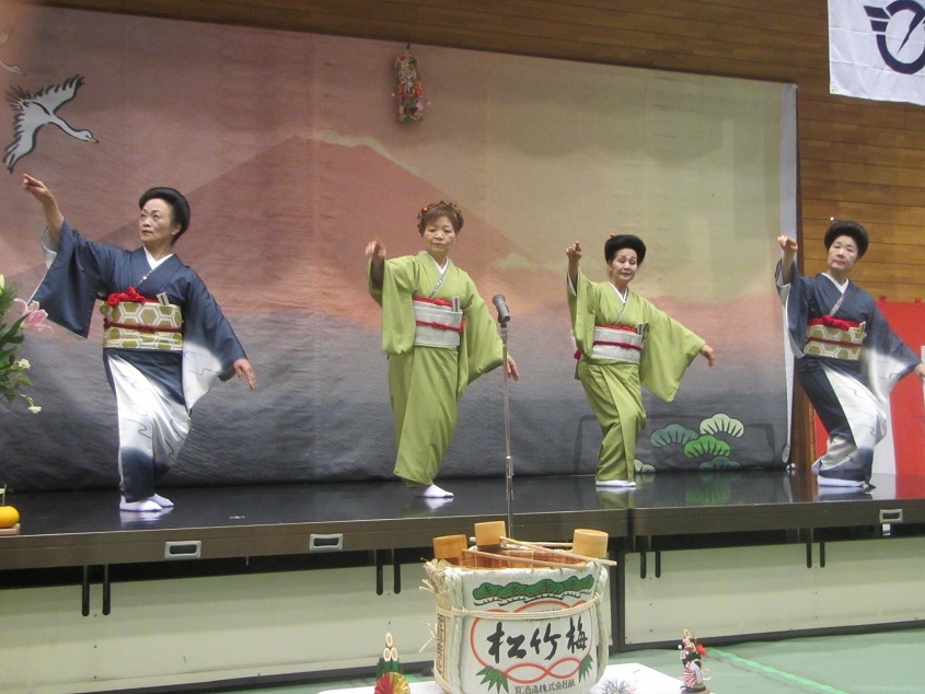 第二部では、吉田教育長の新年挨拶、大庭八寿花会の方々による新春を彩る日本舞踊、そして佐原竹男さんの吟詠と剣詩舞があり、最後に岩崎駒寄社会体育振興協議会会長の三本締めで賑やかな閉会となりました。