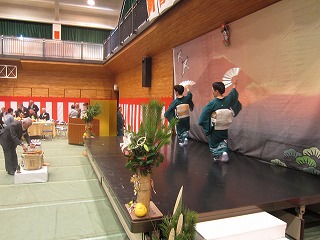 第二部では、大庭八寿花会の方々による新春を彩る日本舞踊、そして佐原竹男さんの吟詠と剣詩舞があり、最後は三本締めで賑やかな閉会となりました。