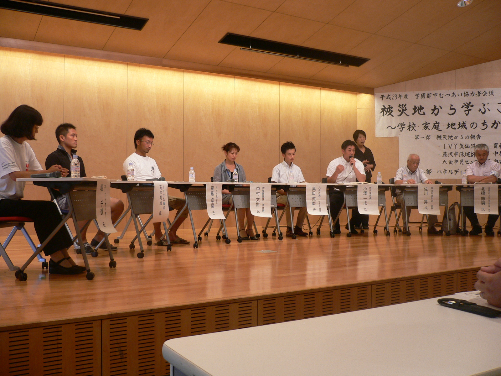 「学園都市むつあい協力者会議」からのお知らせ印刷2011/08/19 17:34 投稿者:被災地から学ぶこと・報告1 8月12日に多摩大学で実施された「被災地から学ぶこと」~学校・家庭・地域のちから~は、気仙沼より若者ボランティア「ivy気仙沼」の4名が参加して、マスコミとは違う生の声に触れることができ、支援ボランティアも参加。後半のパネルディスカッションでは、自治連会長・教育委員長・私も交えて幅広い意見の交換ができた会となりました。 海老根市長も挨拶された研修会は、参加者も250名を数える盛り上りとなって、時間も延長されました。当日はj-comも取材に訪れ、放送日も下記のように決まりました。 9月1日から10日まで、一日5回30分枠で放送。 9:00~、12:00~、16:00~、20:00~、23:00~ 当日集められた募金は、集計して気仙沼の「ivy気仙沼」に後日送金します。 当日参加された皆さま、本当にありがとうございます。 コメント (0) コメントコメントする 学園都市むつあい協力者会議へ戻る