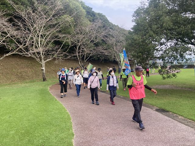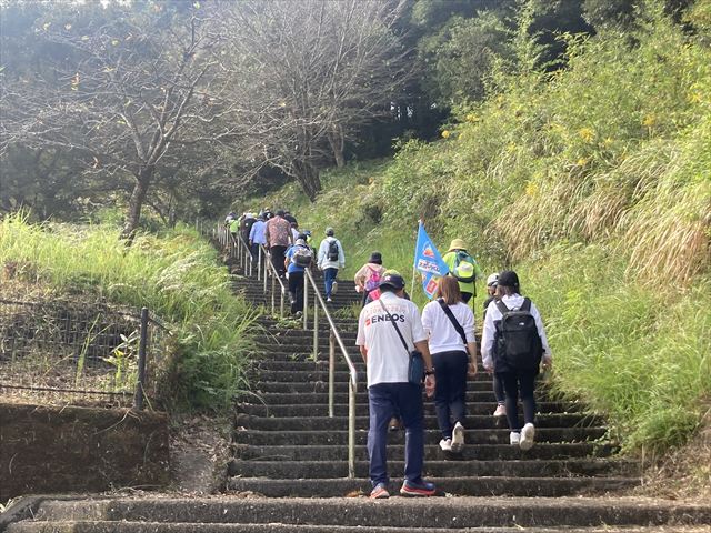 10時にはアンカー(組島・上原)が出発参加者の安全や完歩を確認した。参加者は昨年とほぼ同数の111名であったが、家族単位、若者グループと年齢層の広がりがあった。毎年行っている「んだもしたん健幸ウオーキング」の市民への知名度が上がった為か、健康志向の高まりが一番の要因であろう。