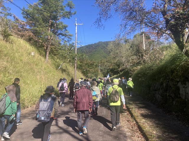 11月例会を今年は、須木ほぜ祭り実行委員会と協力して3日に須木路を歩きました。秋らしい少し寒さを感じられる晴天。ウサギさん(5.84k)、カメさん(4.54k)の2コースを設定し、各自の体力に合わせてウオーキングを実施しました。集合時間の8時30分には参加予定者の大部分が受付を済ませた。9時に出発式、コースの紹介、準備体操後、ウサギさんコースがスタート、遅れる事10分、カメさんコースが出発。紅葉は見られず少し残念であった。ほぜ祭りと同時開催となったので、会員の参加者がいつもより多かった。又、市民参加者も含めて91名の大会となった。終了後には完歩賞として(須木物産)を配布した。ほぜ祭り実行委員会から、ウオーキング参加者全員に抽選券を頂きました。ほぜ祭り(本庄川河川敷)会場に移動して、須木の食を楽しんだ。会場でクラブの紹介も行いました。抽選会では会員の数名が賞品をゲット出来ました。来年は紅葉に当たりますように!